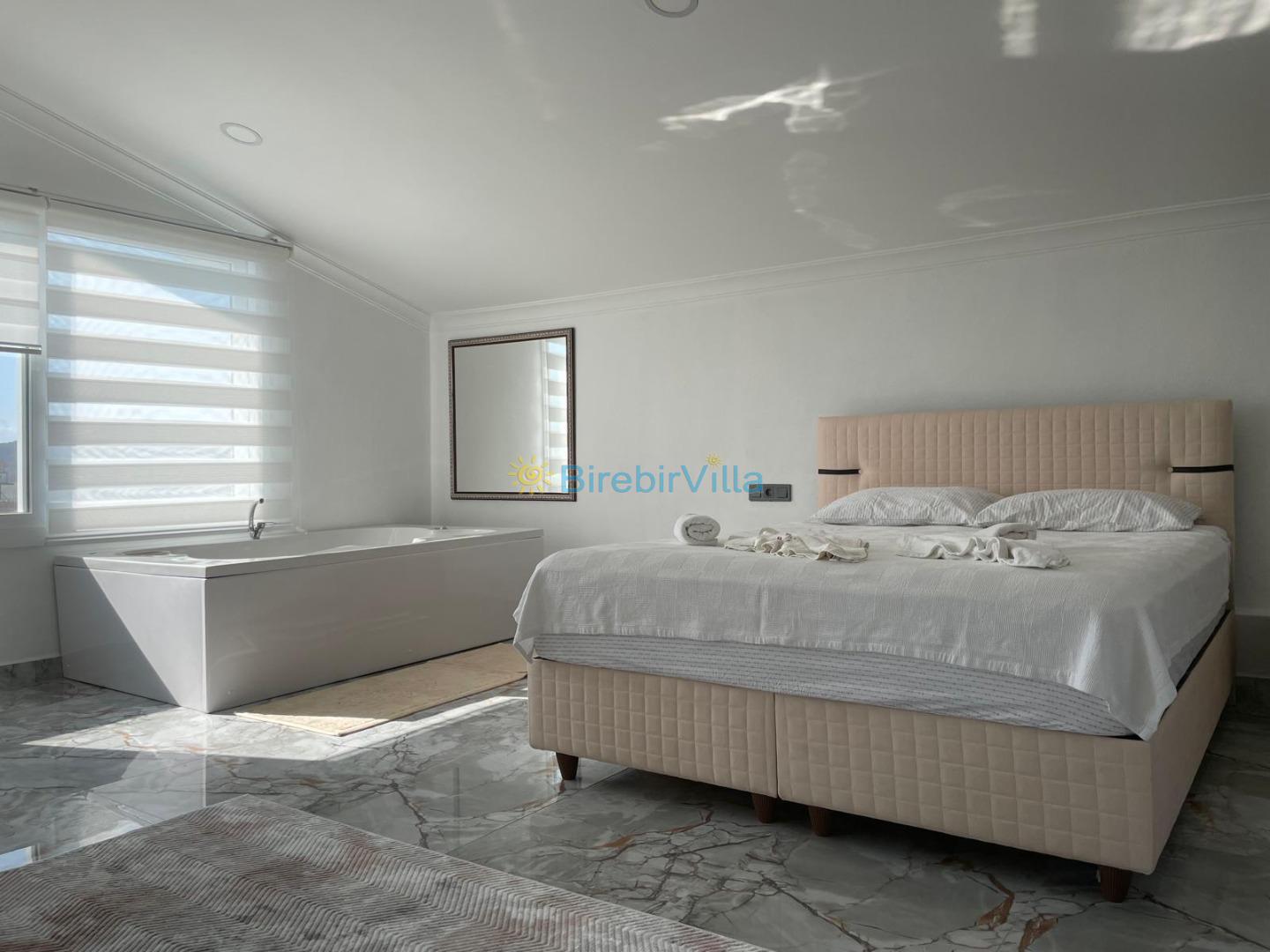 2.Yatak odası: Çift kişilik yatak, ebeveyn banyosu, jakuzi, klima, elbise dolabı, makyaj masası, bulunmaktadır.