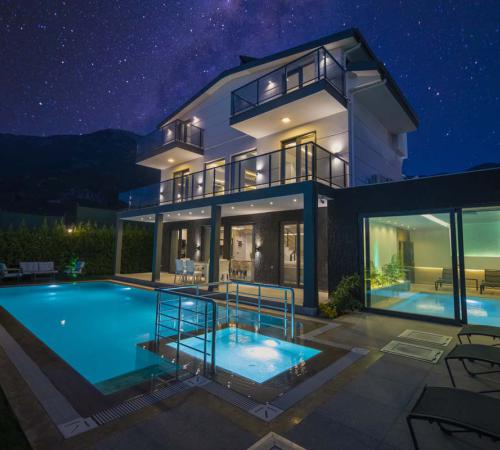 Villa Seher, Ölüdeniz'in Hisarönü bölgesinde bulunan 4 yatak odalı, 4 banyolu, 7 kişilik kapalı havuzlu çift jakuzili lüks tatil villasıdır.