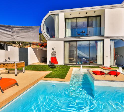 Villa Süpernova, Kalkan bölgesinde yer alan, 5 yatak odalı 10 kişi kapasiteli deniz manzaralı size özel lüks kiralık villamızdır.