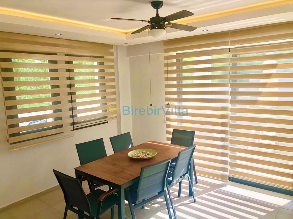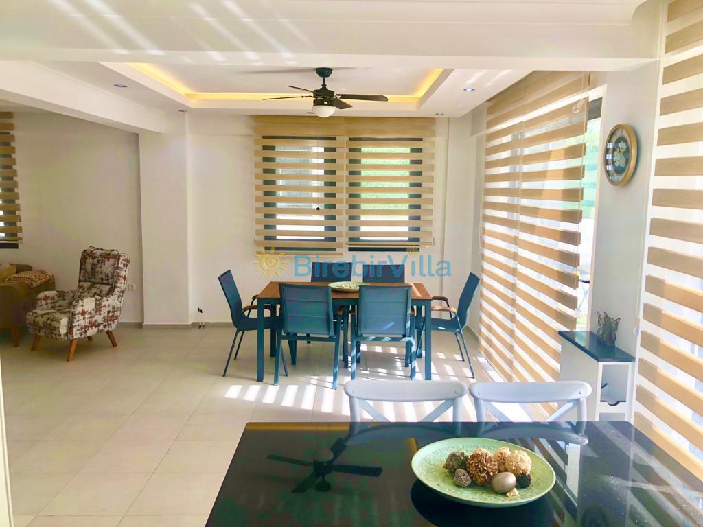 Salon: Açık mutfaklı salon, modern koltuklar, 6 kişilik yemek masası, Lcd tv, uydu alıcısı ve klima bulunmaktadır.