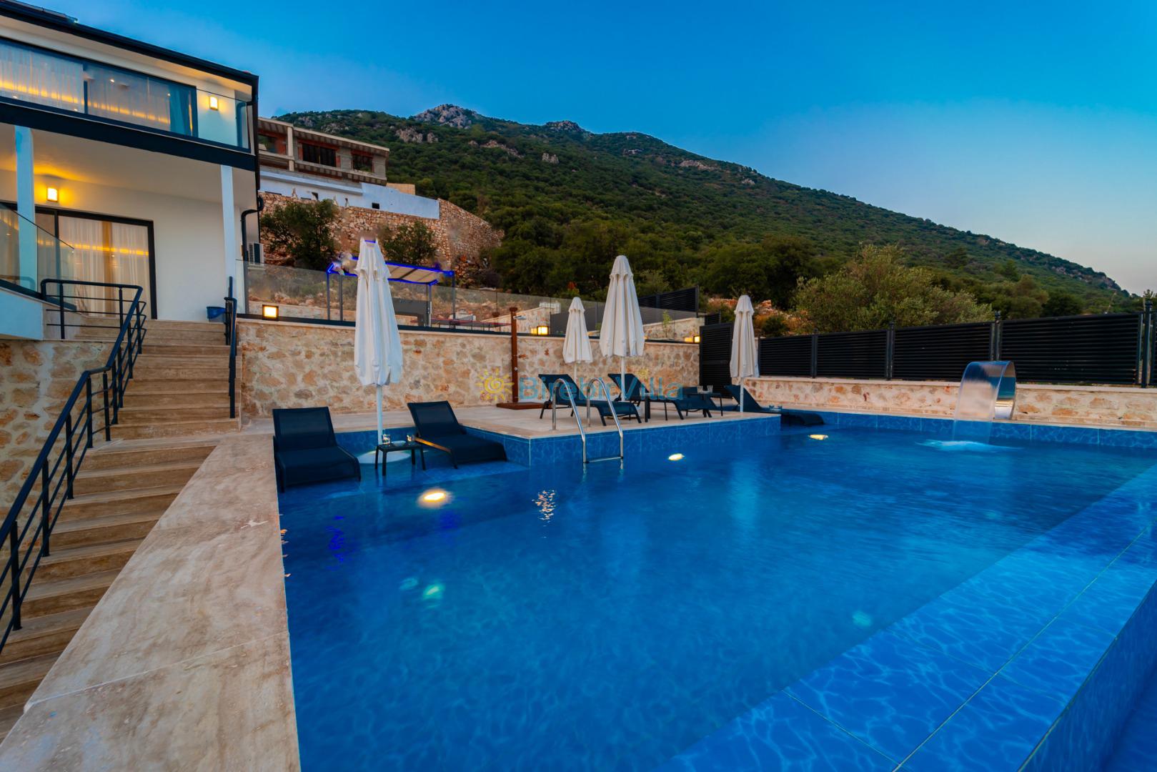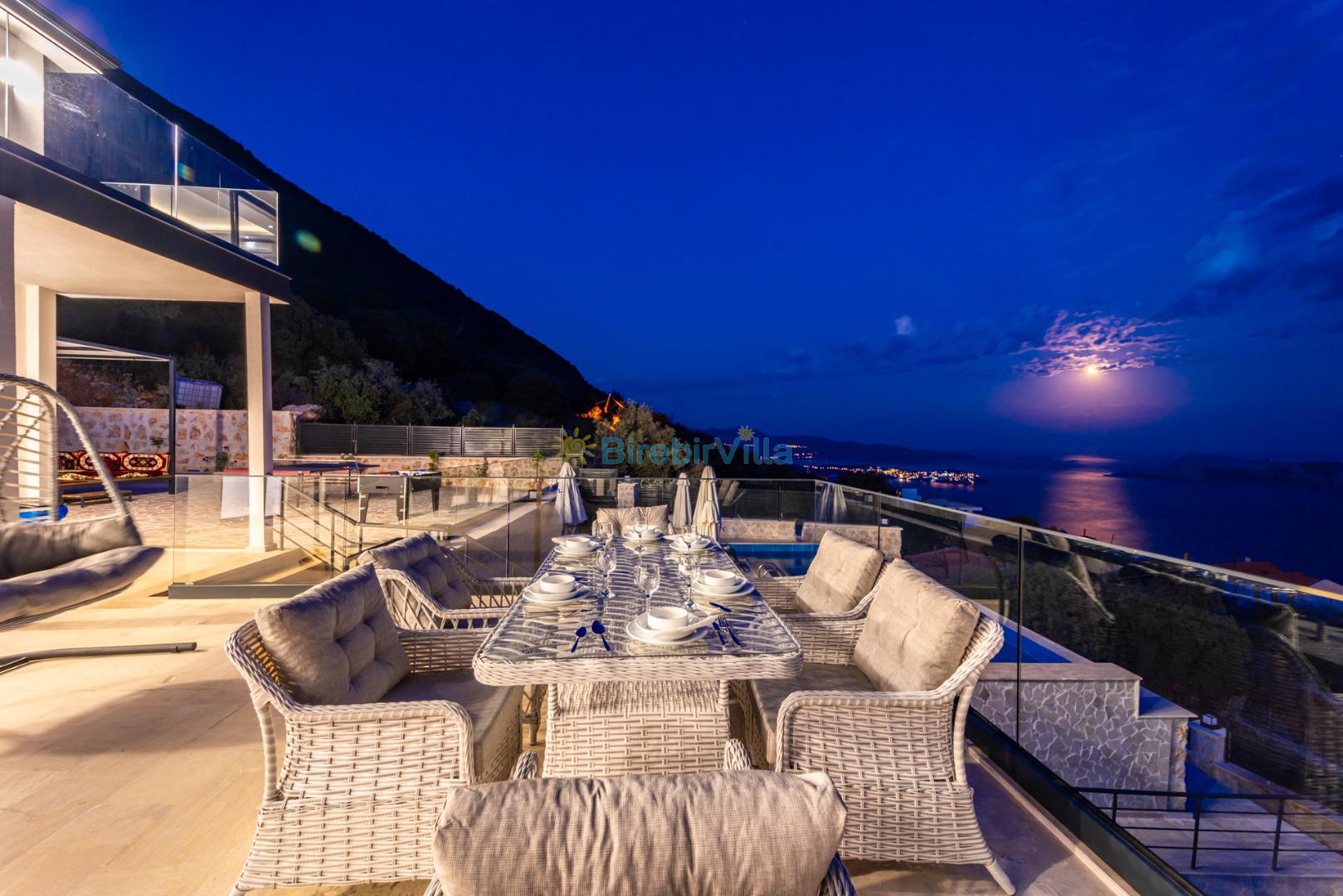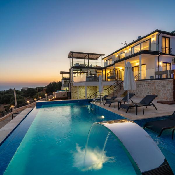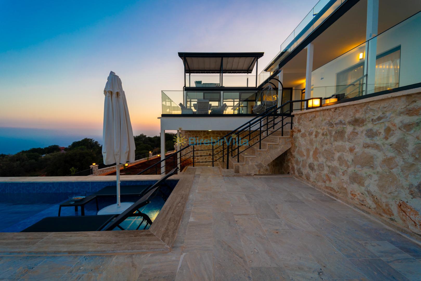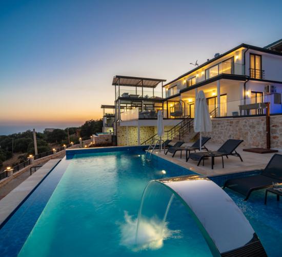 Villa Avenir, Kaş mevkisinde yer alan 4 yatak odalı 8 kişi kapasiteli deniz manzaralı lüks tatil villasıdır. Saunalı, Jakuzili ve kapalı Havuzlu villamız misafirlerimiz için gerekli bütün konforu sağlamaktadır. Isıtmalı havuzu ve havuz alanından görünen muhteşem deniz ve doğa manzarası eşliğindeki bu harika villamızda tatilin tadını doyasıya çıkarabilirsiniz. Kalkan bölgesinin o eşsiz manzarasına panaromik bir bakış açısı ile ulaşabileceğiniz villamız tepe üzerine kurulmuştur. Villa içerisinde ihtiyaç duyabileceğiniz tüm detaylar en ince ayrıntısına kadar düşünülmüş olup odaların hemen her yerinden enfes deniz manzarası görünmektedir. Ailenizle ve sevdiklerinizle size ait özel havuzunda keyifli vakit geçirebilir ve deniz manzaralı bahçesinde mangal yakabilirsiniz.