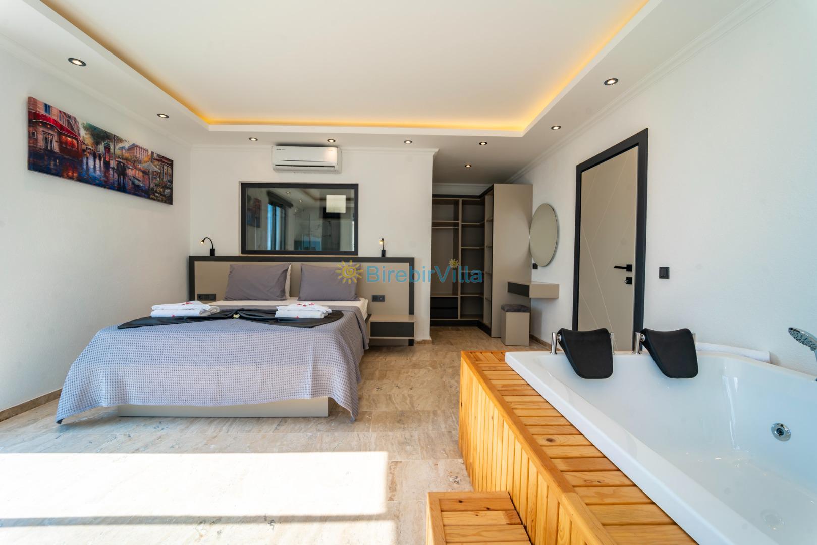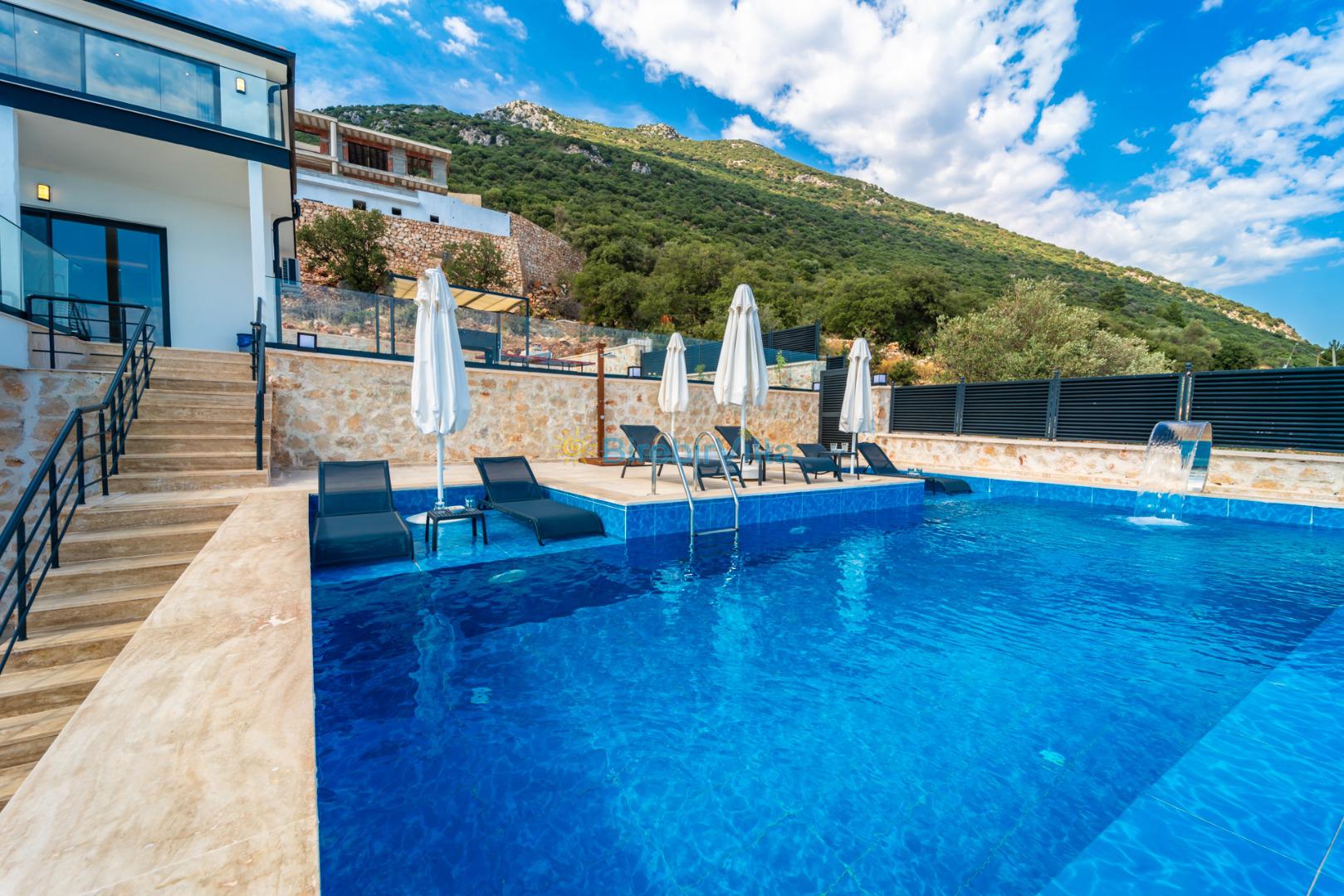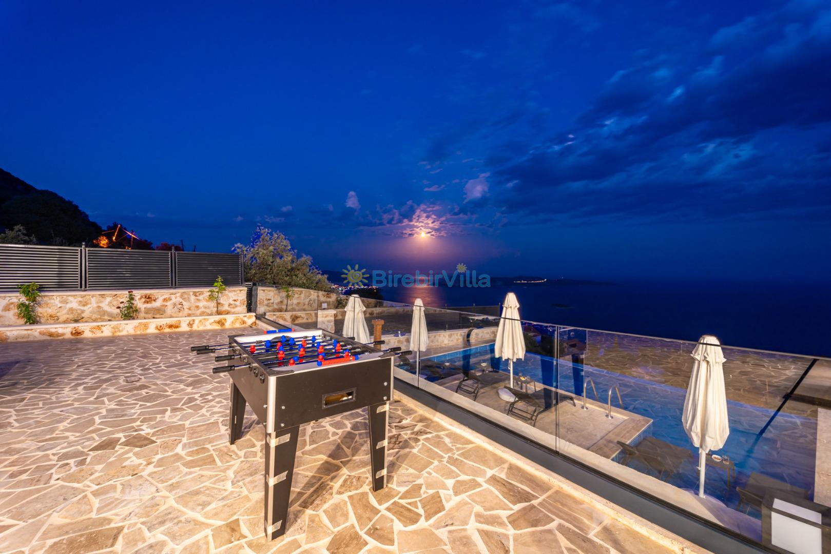 Villa Avenir, Kaş mevkisinde yer alan 4 yatak odalı 8 kişi kapasiteli deniz manzaralı lüks tatil villasıdır. Saunalı, Jakuzili ve kapalı Havuzlu villamız misafirlerimiz için gerekli bütün konforu sağlamaktadır. Isıtmalı havuzu ve havuz alanından görünen muhteşem deniz ve doğa manzarası eşliğindeki bu harika villamızda tatilin tadını doyasıya çıkarabilirsiniz. Kalkan bölgesinin o eşsiz manzarasına panaromik bir bakış açısı ile ulaşabileceğiniz villamız tepe üzerine kurulmuştur. Villa içerisinde ihtiyaç duyabileceğiniz tüm detaylar en ince ayrıntısına kadar düşünülmüş olup odaların hemen her yerinden enfes deniz manzarası görünmektedir. Ailenizle ve sevdiklerinizle size ait özel havuzunda keyifli vakit geçirebilir ve deniz manzaralı bahçesinde mangal yakabilirsiniz.
