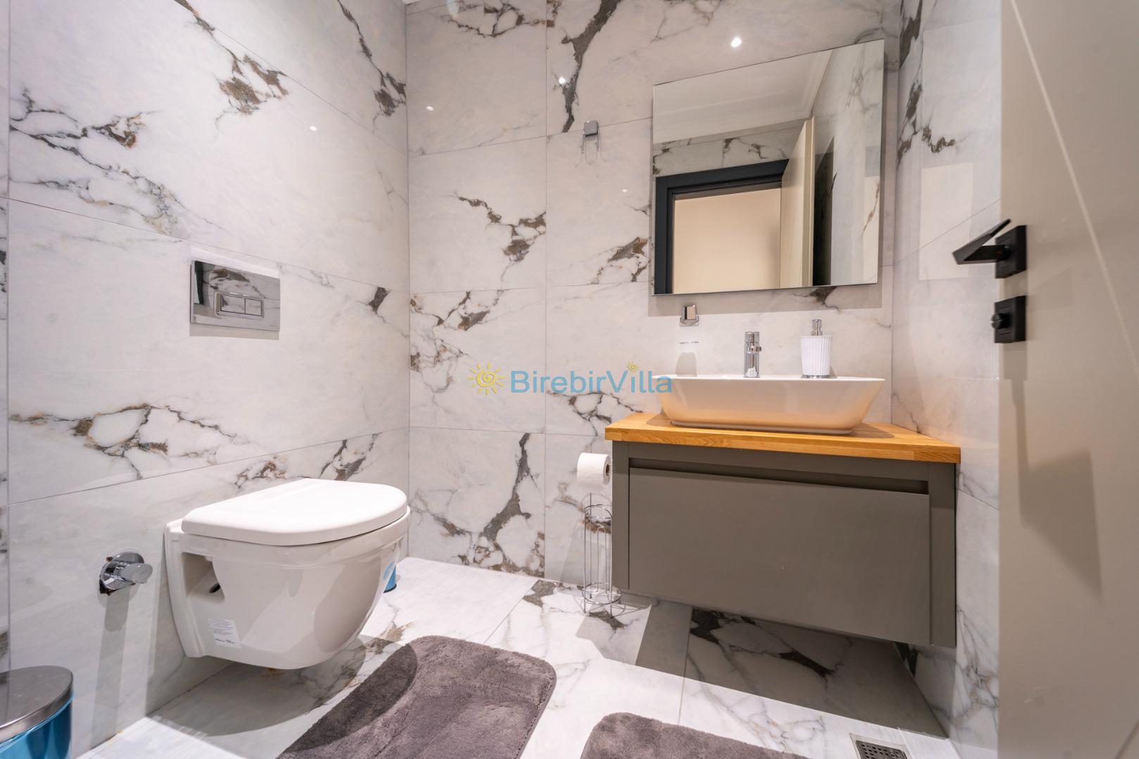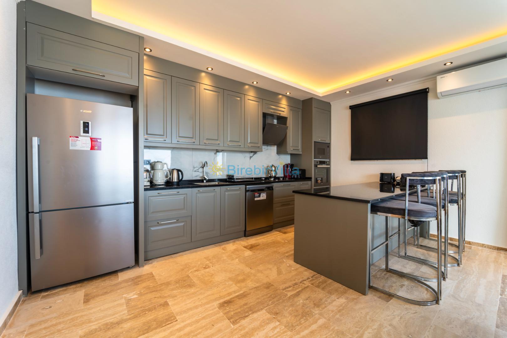 Mutfak: Açık planlı muhteşem modern mutfak, 6 kişilik yemek masası, buzdolabı, bulaşık makinası, çamaşır makinası, fırın, ocak, davlumbaz ve bar tezgahı bulunmaktadır.