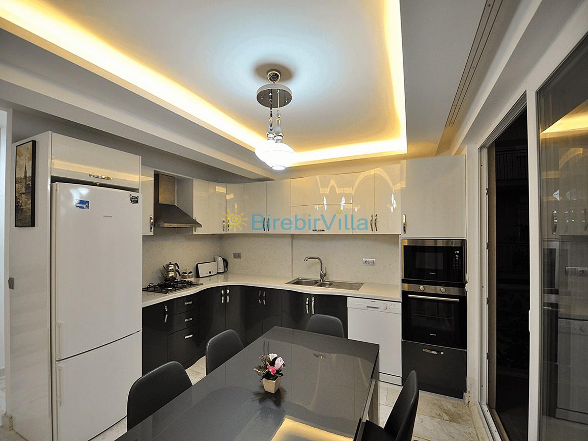 Mutfak: Açık planlı modern mutfak, 8 kişi ve daha fazla kişiye yetecek kadar mutfak malzemeleri, bulaşık makinesi, çamaşır makinesi, fırın, ocak, buzdolabı, mikrodalga fırın, ekmek kızartma makinesi ve ketle bulunmaktadır.
