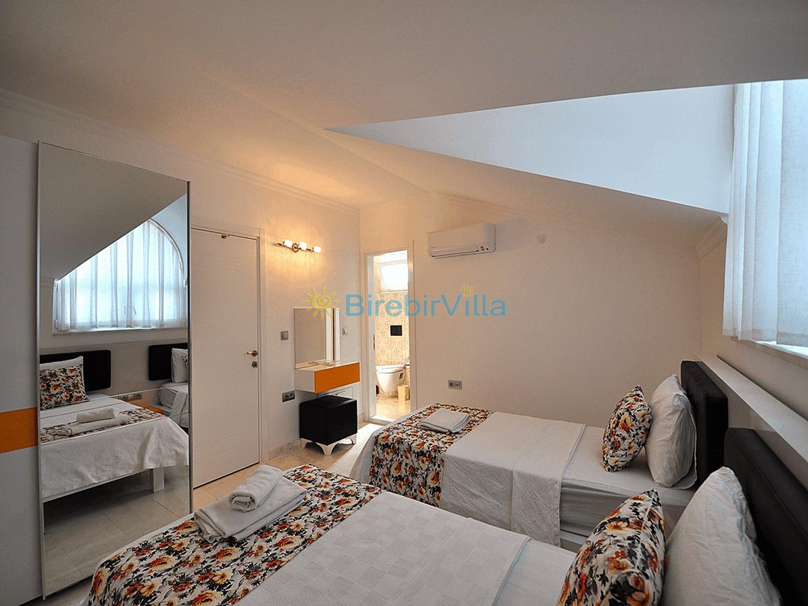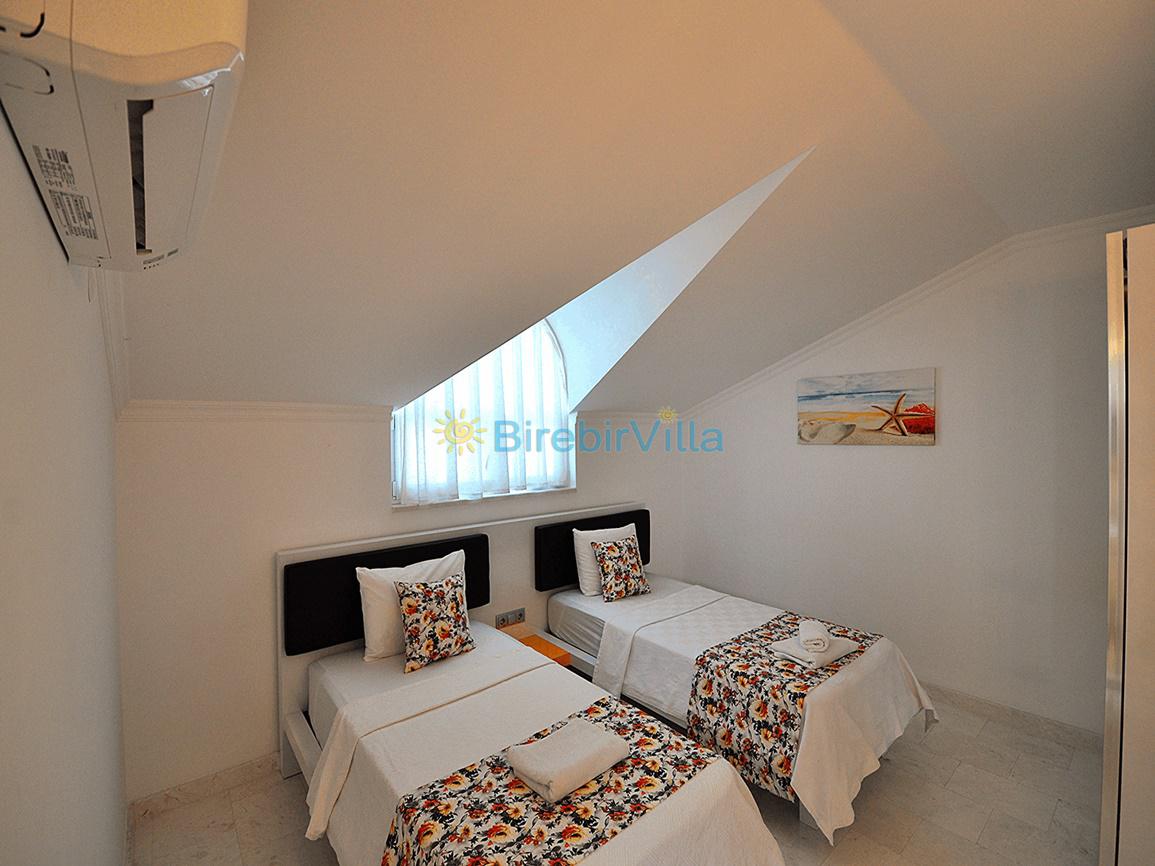4.Yatak odası: 2 Adet tek kişilik yatak, Komidin, Klima, Elbise dolabı, ebeveyn banyo ve balkon bulunmaktadır.