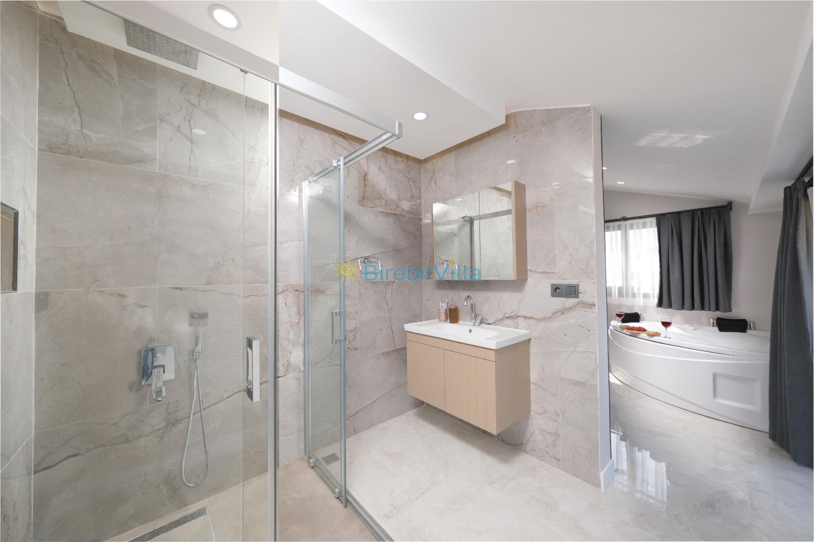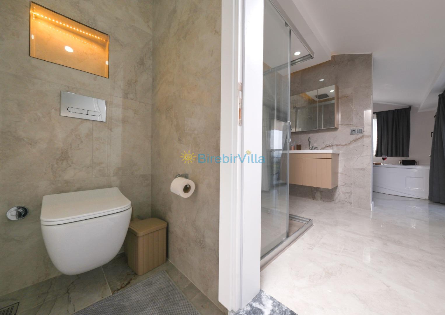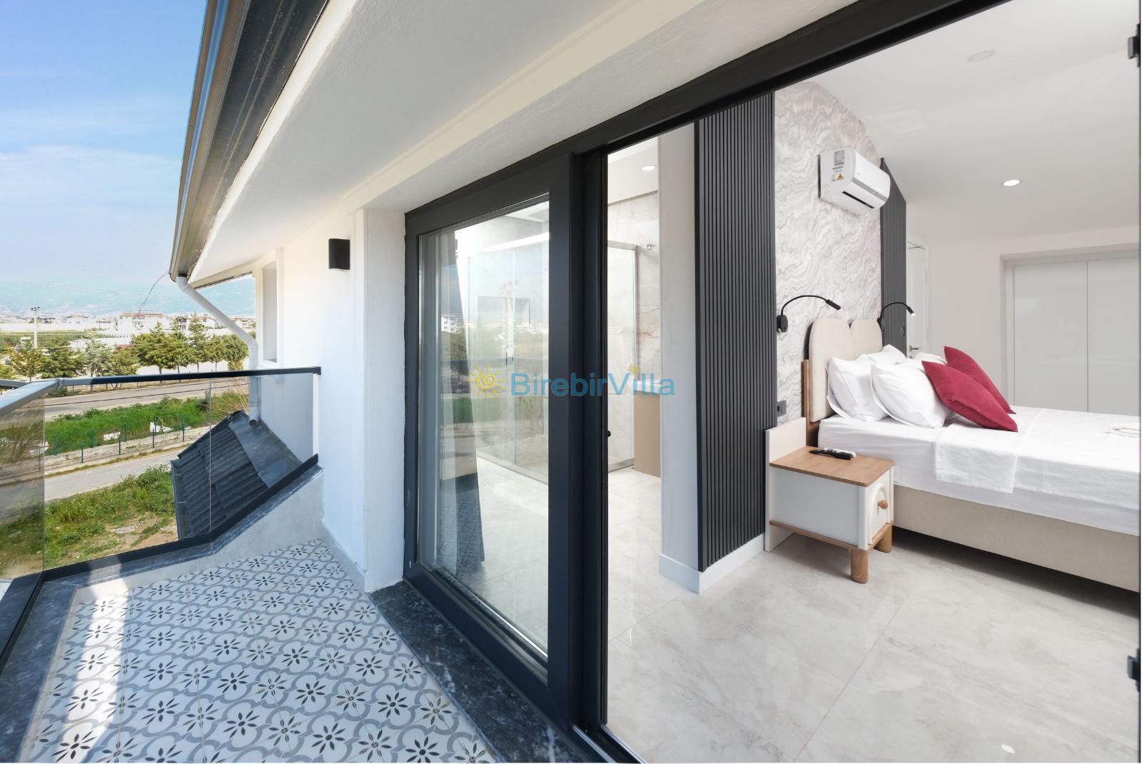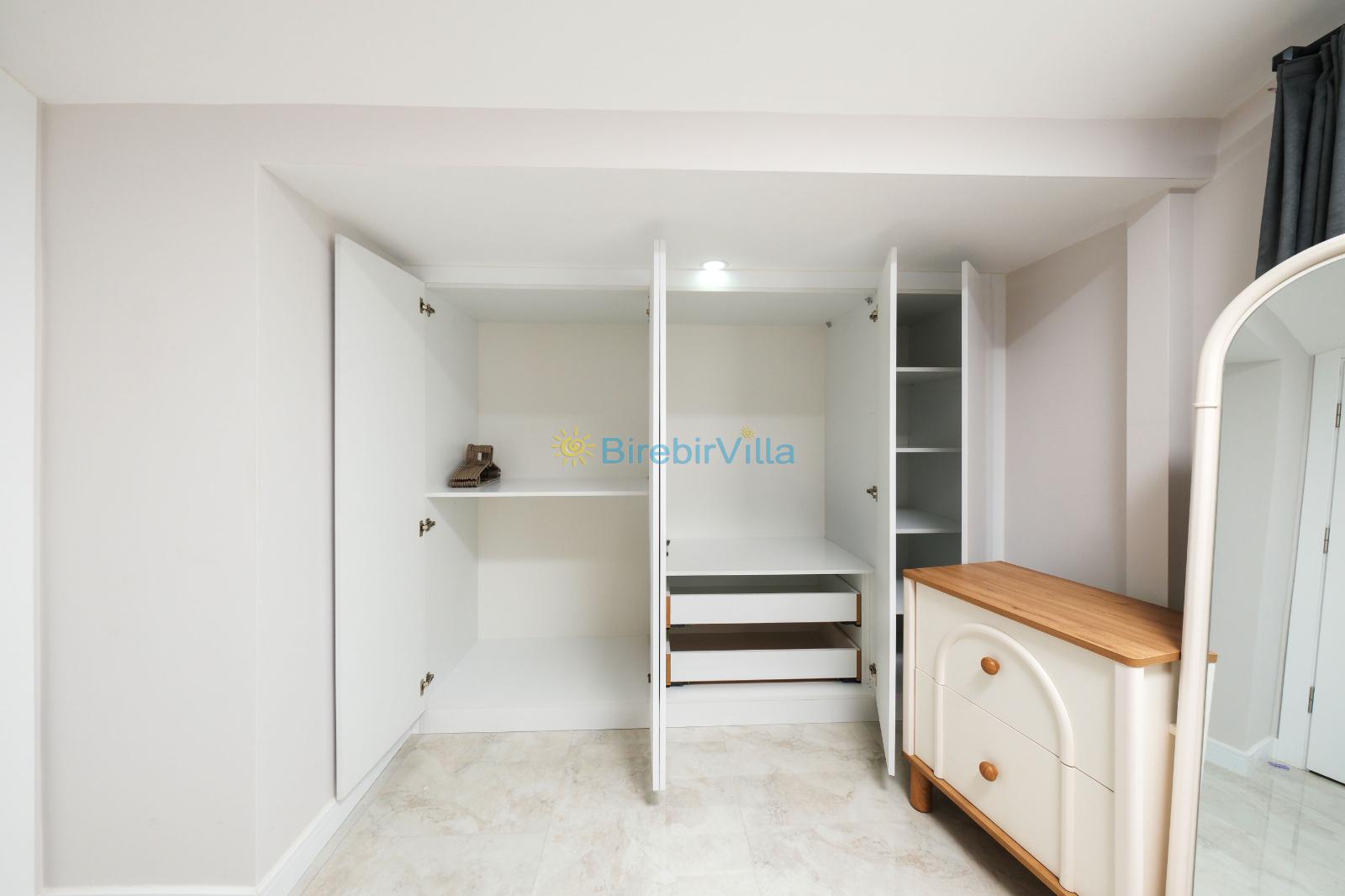1.Yatak odası: Çift kişilik yatak, klima, ebeveyn banyosu, jakuzi, televizyon, komodin, elbise dolabı ve balkon bulunmaktadır.