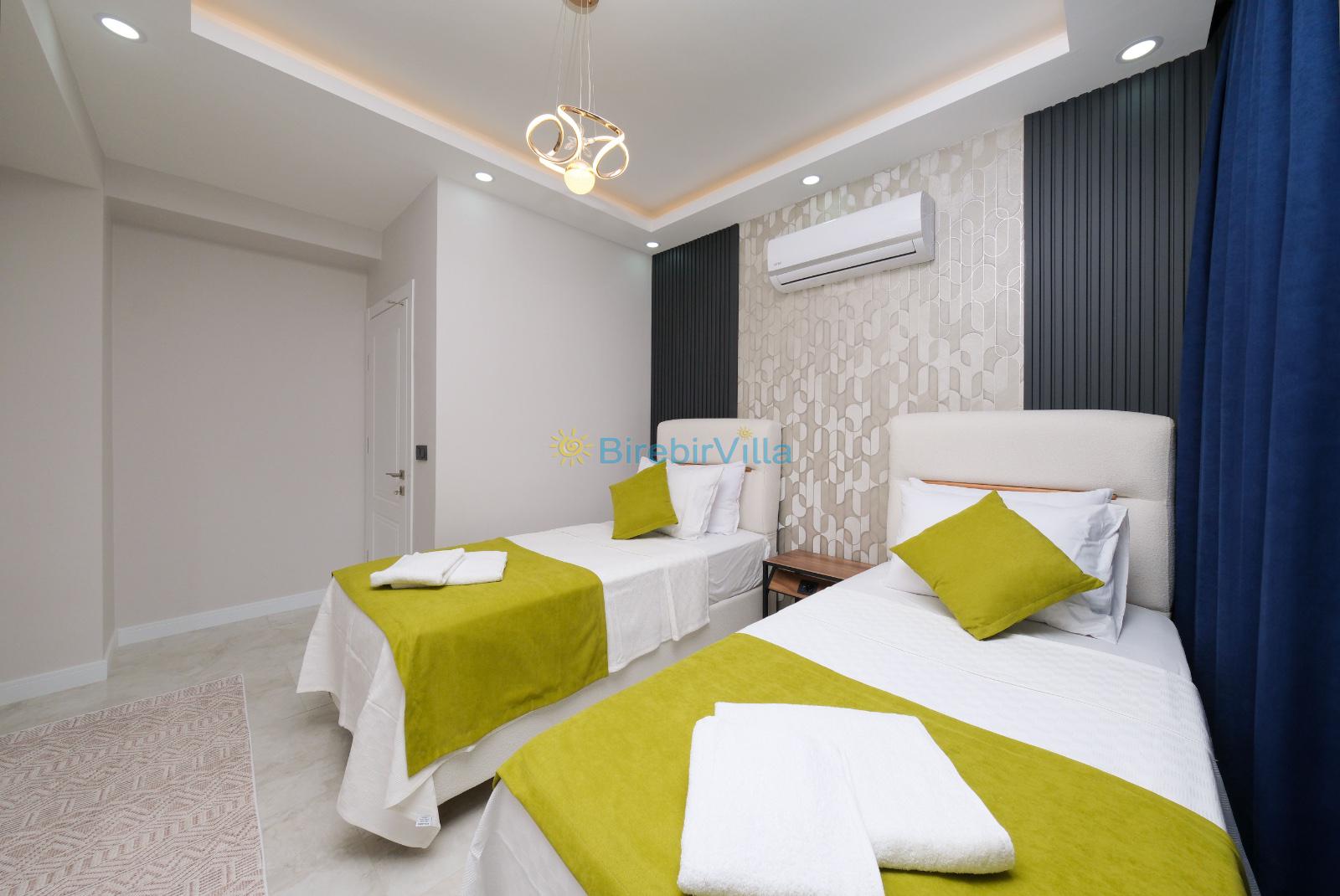3.Yatak odası: Tek kişilik iki yatak, klima, komodin ve balkon bulunmaktadır.