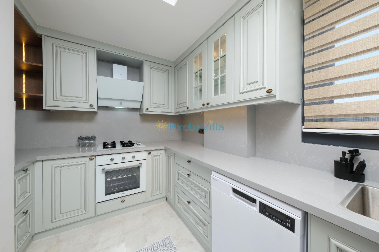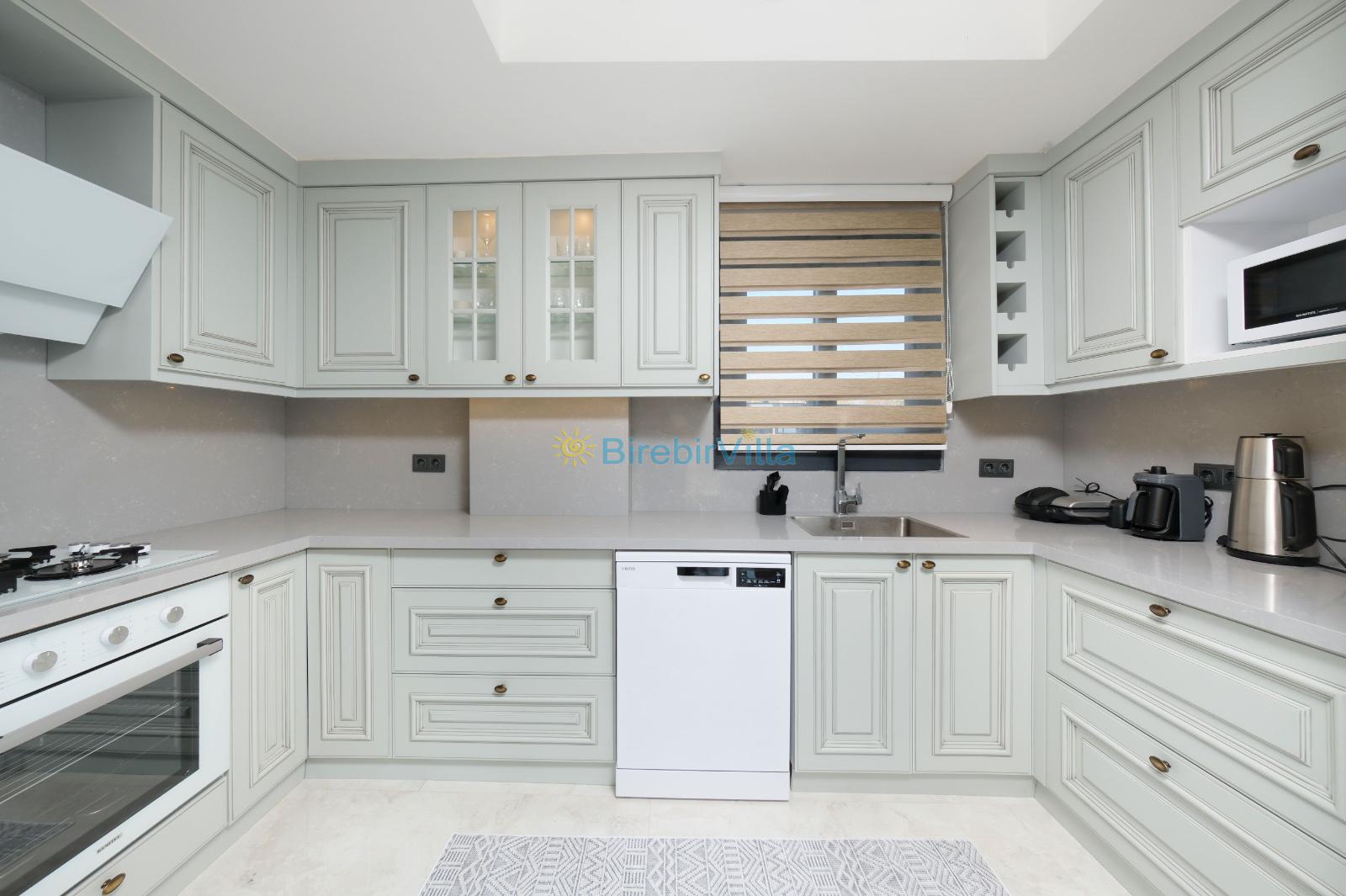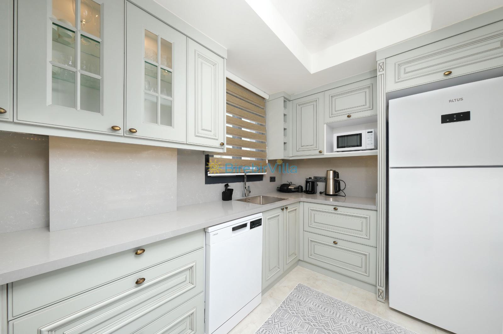Mutfak: Açık mutfak, 6 kişi ve daha fazla kişiye yetecek kadar mutfak malzemesi, 6 kişilik yemek masası, bulaşık makinesi, tost makinesi, fırın, ocak, buzdolabı ve elektronik çay makinesi bulunmaktadır.