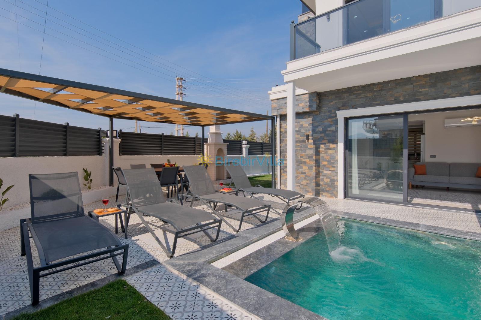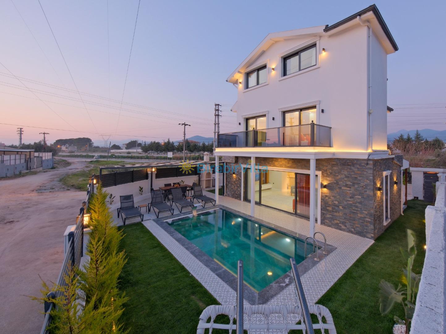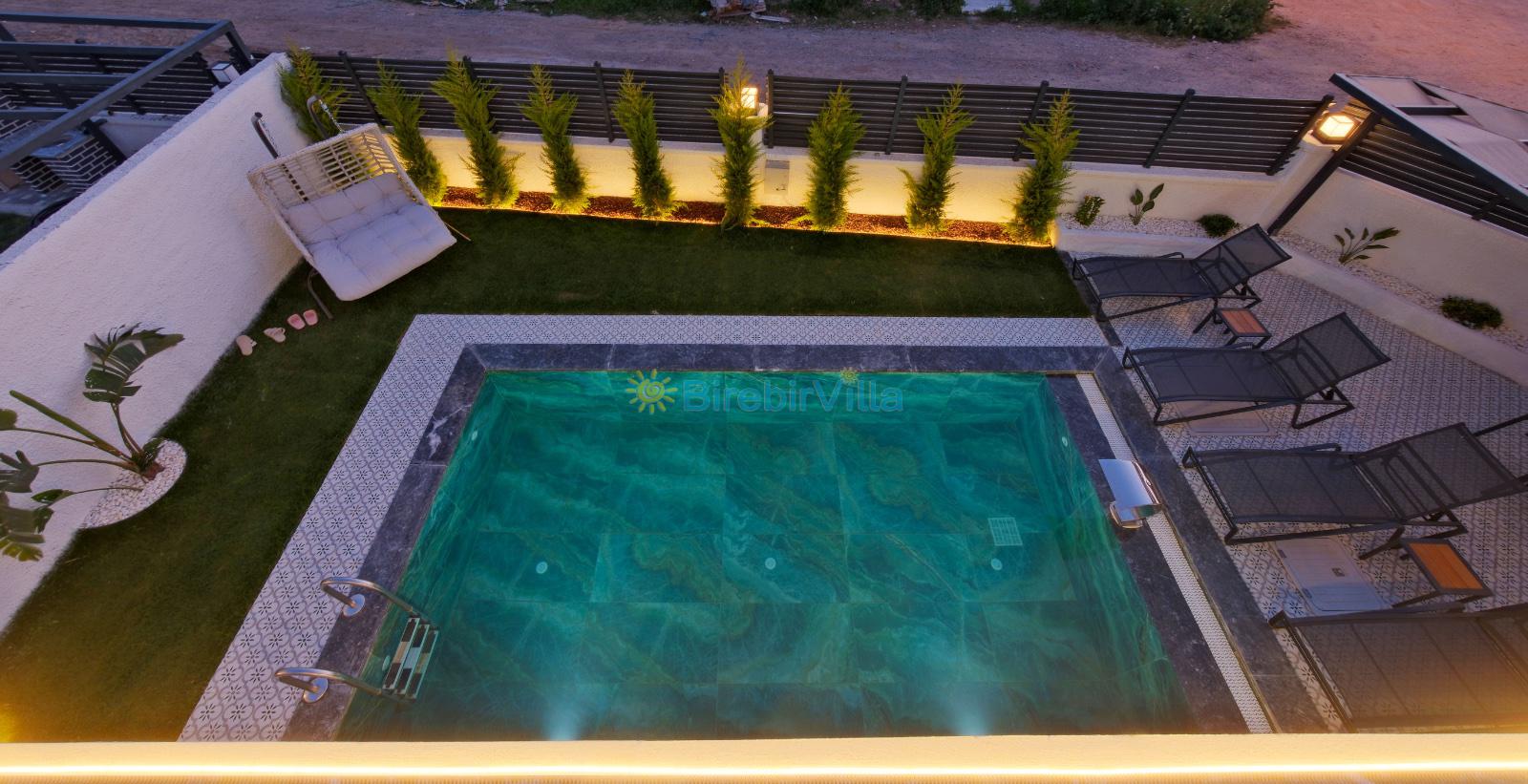 Not: Doğa ile iç içe yaşama sahibi olan tüm villalarımızda düzenli olarak ilaçlama yapılır. Buna rağmen çevrede haşere vb. olma ihtimali vardır. Havuzun korunaklı villalarımızda kesinlikle %100 görünmeme garantisi vermemekteyiz. Bu villalarımızda her zaman %10 sakınma payı mevcuttur. Sitemizde bulunan villa fotoğraflarının ekranı ekrana sığdırmak için 'Geniş Açılı Lens' ile çekilmektedir. Bu nedenle resimlerdeki objeler, gerçek boyutlardan daha büyük veya küçük görünebilmekte.
