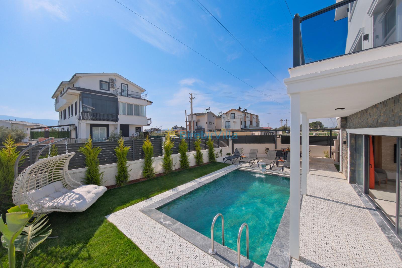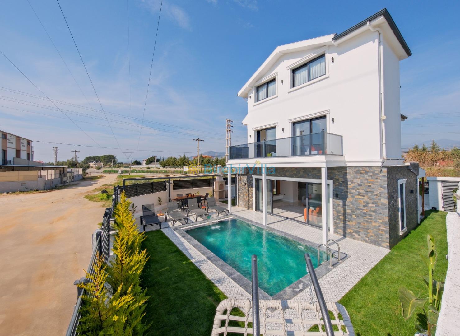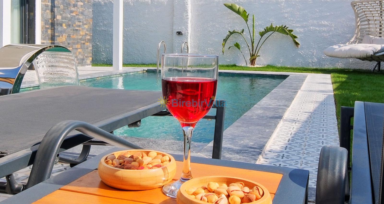 Not: Doğa ile iç içe yaşama sahibi olan tüm villalarımızda düzenli olarak ilaçlama yapılır. Buna rağmen çevrede haşere vb. olma ihtimali vardır. Havuzun korunaklı villalarımızda kesinlikle %100 görünmeme garantisi vermemekteyiz. Bu villalarımızda her zaman %10 sakınma payı mevcuttur. Sitemizde bulunan villa fotoğraflarının ekranı ekrana sığdırmak için 'Geniş Açılı Lens' ile çekilmektedir. Bu nedenle resimlerdeki objeler, gerçek boyutlardan daha büyük veya küçük görünebilmekte.