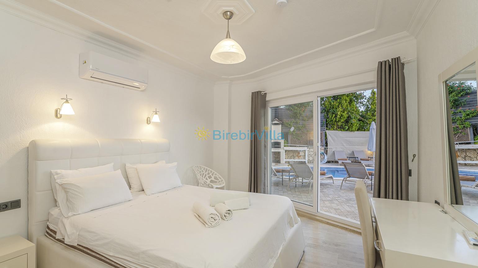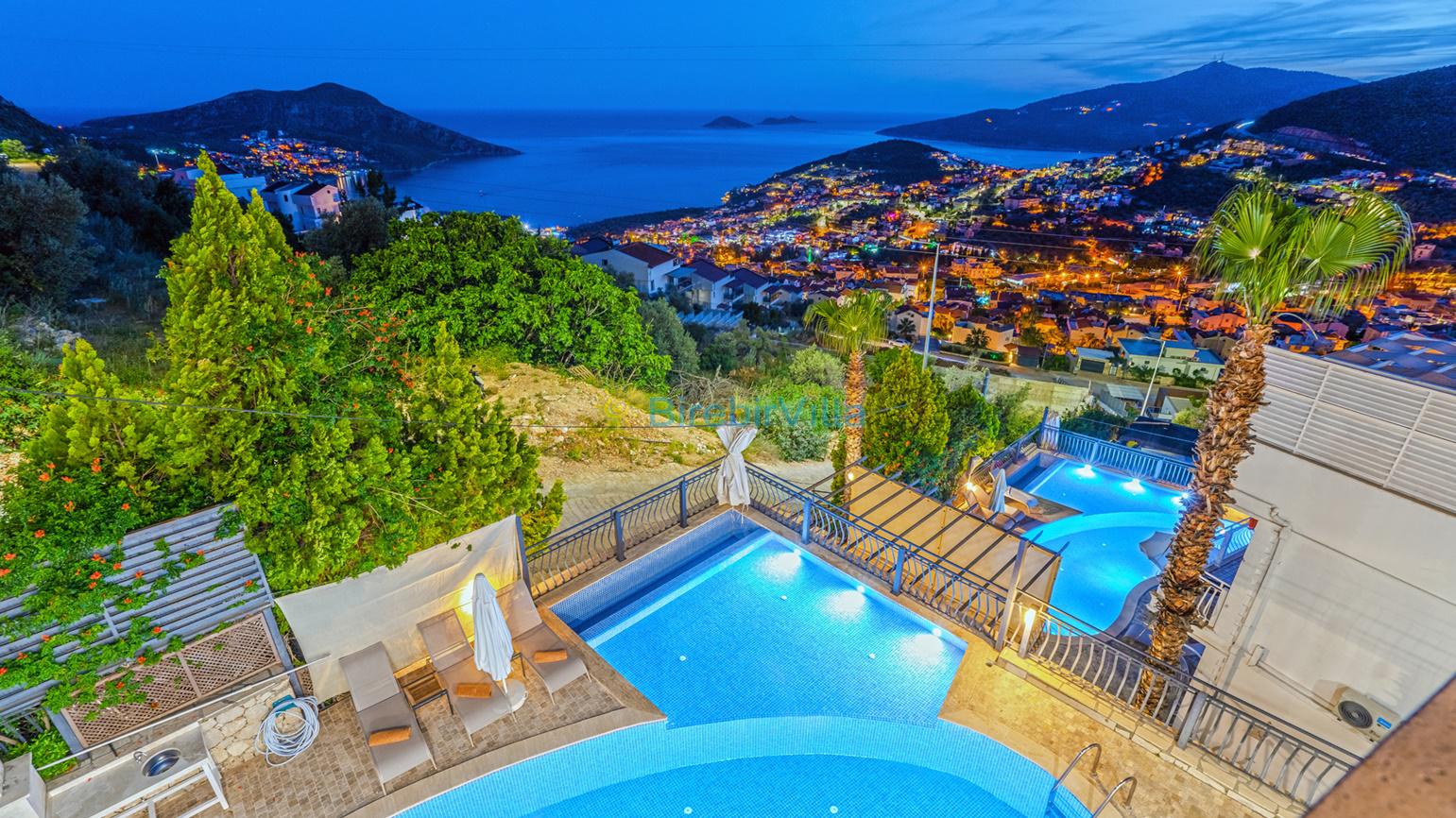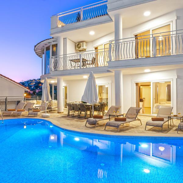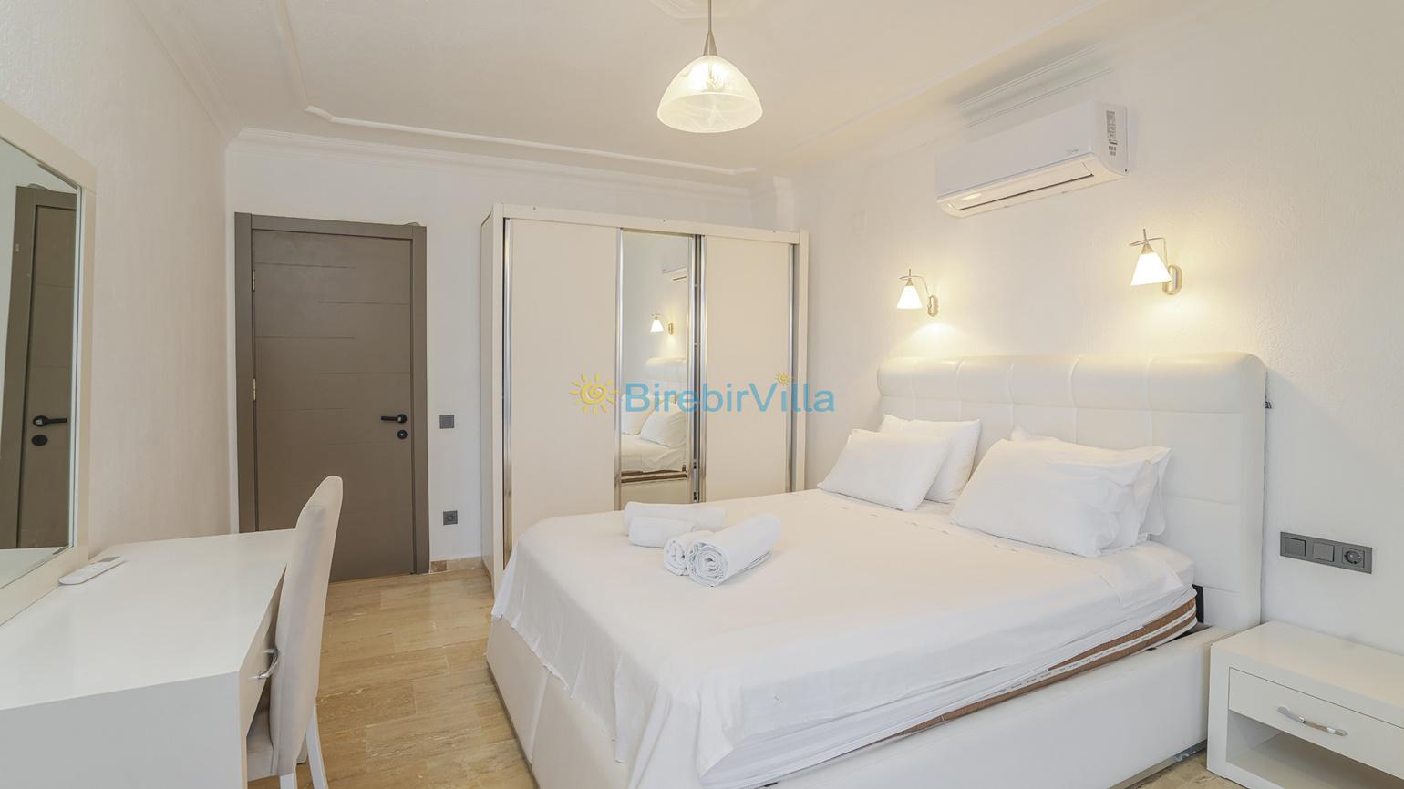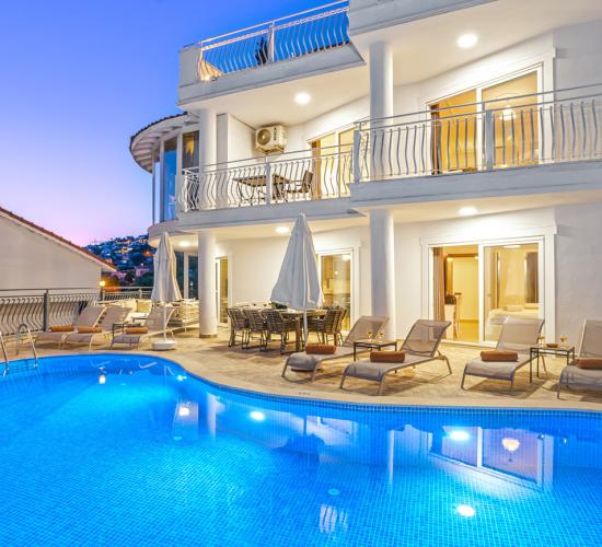 Oldukça ferah bir atmosfer içinde, son derece modern bir şekilde dizayn edilmiş ve 10 kişiye kadar konaklama imkanı sağlayan villamız, 5 oda ve 5 banyodan oluşmaktadır.,Havuz başında bulunan şık bahçe mobilyalarında dinlenebilir, geniş bahçesinde kalabalık arkadaş gruplarıyla mangal partileri verebilirsiniz. Ayrıca villamızın birçok odasından ve salonun cam kapılarından eşsiz manzarayı tatiliniz boyunca her an izleyebilirsiniz.