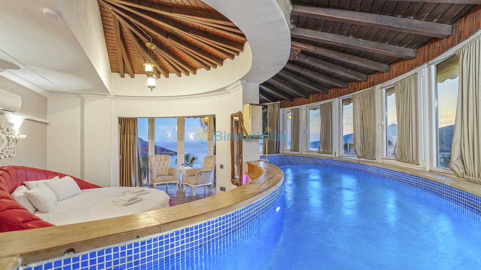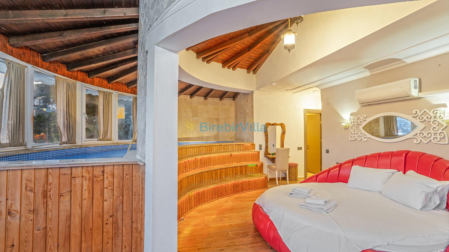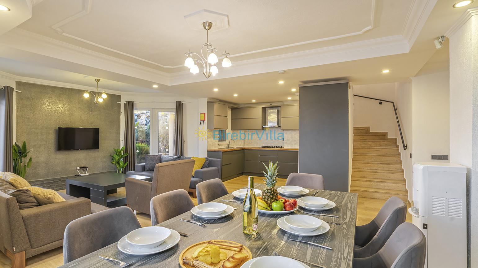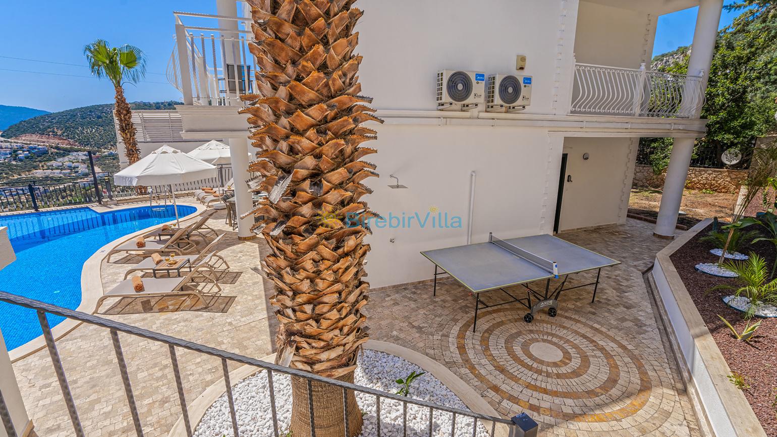 Oldukça ferah bir atmosfer içinde, son derece modern bir şekilde dizayn edilmiş ve 10 kişiye kadar konaklama imkanı sağlayan villamız, 5 oda ve 5 banyodan oluşmaktadır.,Havuz başında bulunan şık bahçe mobilyalarında dinlenebilir, geniş bahçesinde kalabalık arkadaş gruplarıyla mangal partileri verebilirsiniz. Ayrıca villamızın birçok odasından ve salonun cam kapılarından eşsiz manzarayı tatiliniz boyunca her an izleyebilirsiniz.