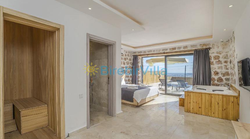 1.Yatak odası: Çift kişilik yatak, ebeveyn banyo, jakuzi, klima, Lcd Tv, elbise dolabı, makyaj masası, sauna ve havuza çıkış bulunmaktadır.