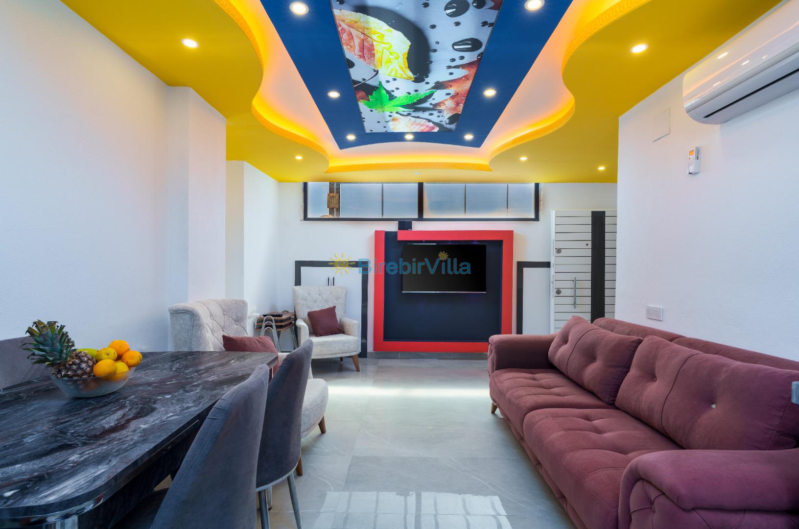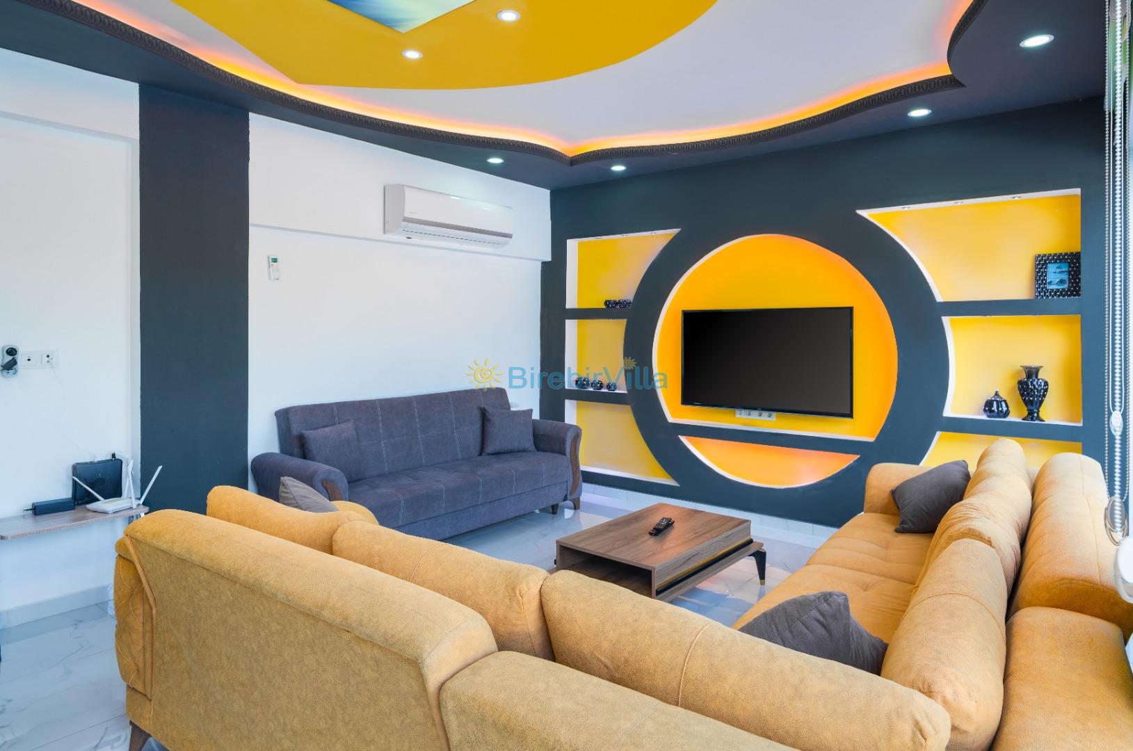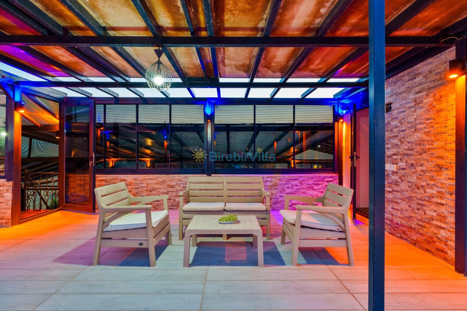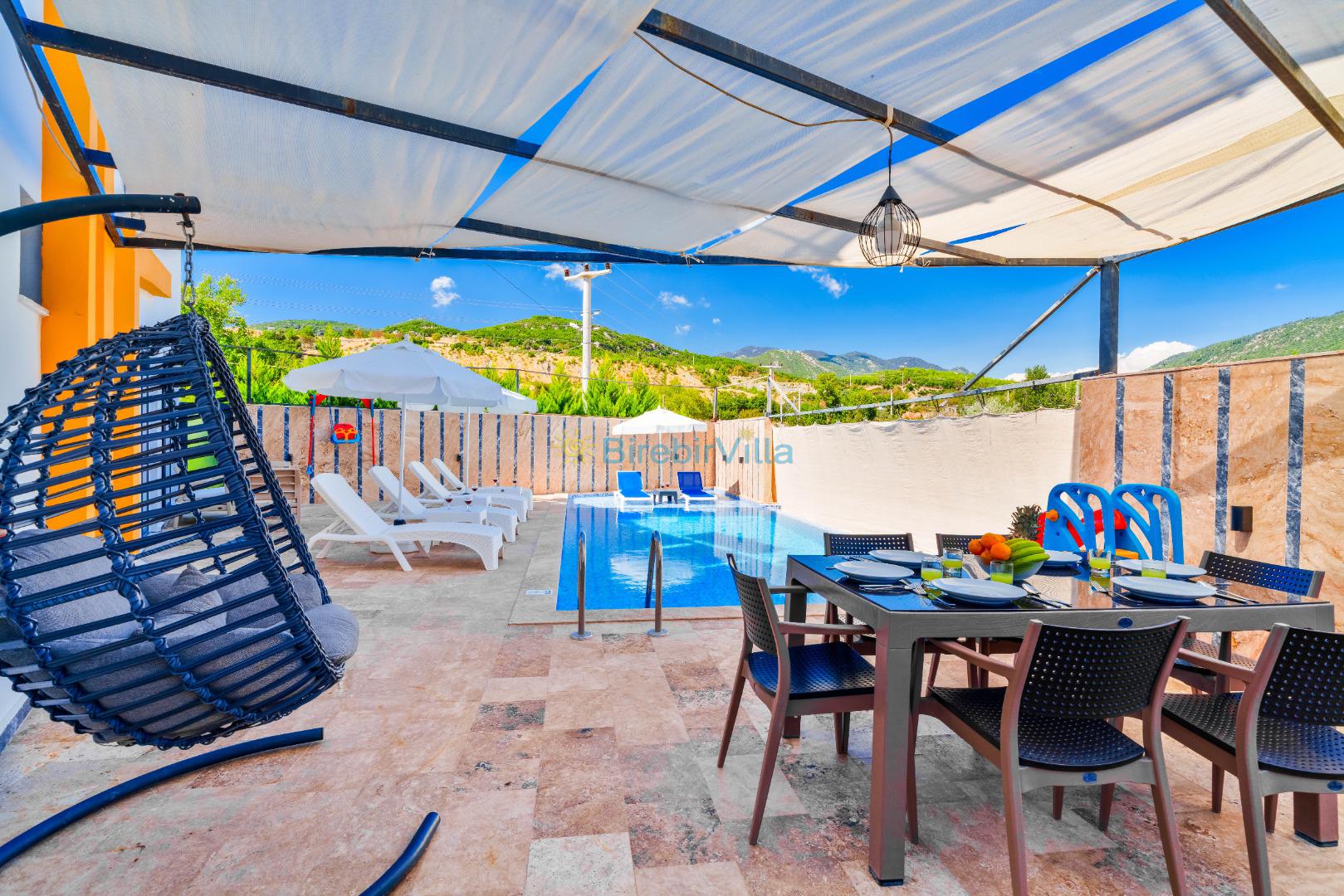 Salon: Açık mutfaklı salon, koltuklar, klima, Lcd tv, internet, uydu alıcı, oturma grubu ve yemek masası bulunmaktadır. Salondan havuza açılan bir çıkışımız mevcuttur.