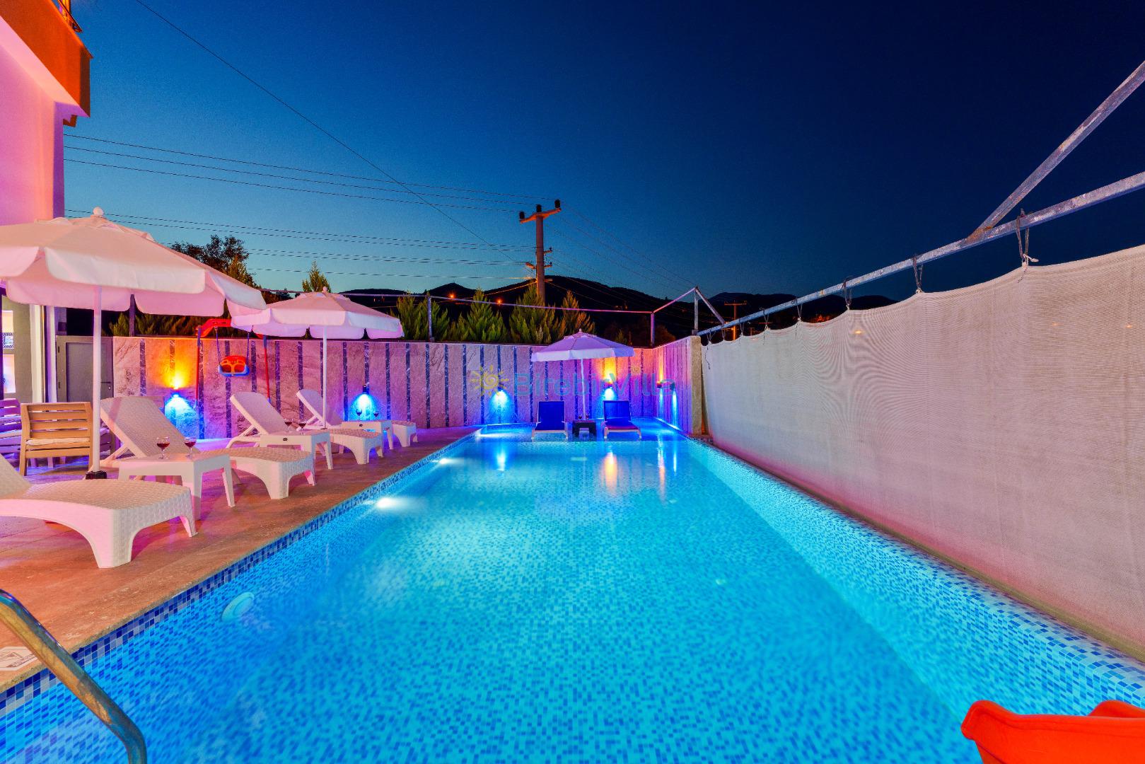 Villa Blanch, Kalkan’ın en popüler ve huzurlu bölgelerinden biri olan İkizce mevkiinde konumlanan, 5 yatak odalı, 5 banyolu ve 10 kişi konaklama kapasiteli, kapalı havuzlu lüks bir tatil villasıdır. Geniş kapasitesi sayesinde kalabalık aileler ve arkadaş grupları için ideal bir konaklama imkânı sunar. Modern mimarisi, ferah yaşam alanları ve saunası ile konforlu bir tatil deneyimi vadeden villa, doğa ile iç içe sakin bir atmosferde yer almaktadır. Kalkan İkizce kiralık villa, 10 kişilik saunalı manzaralı villa, geniş aile villası ve özel havuzlu lüks tatil villası arayışında olan misafirler için Villa Blanch, manzara, konfor ve ayrıcalığı bir arada sunan mükemmel bir tatil alternatifidir.