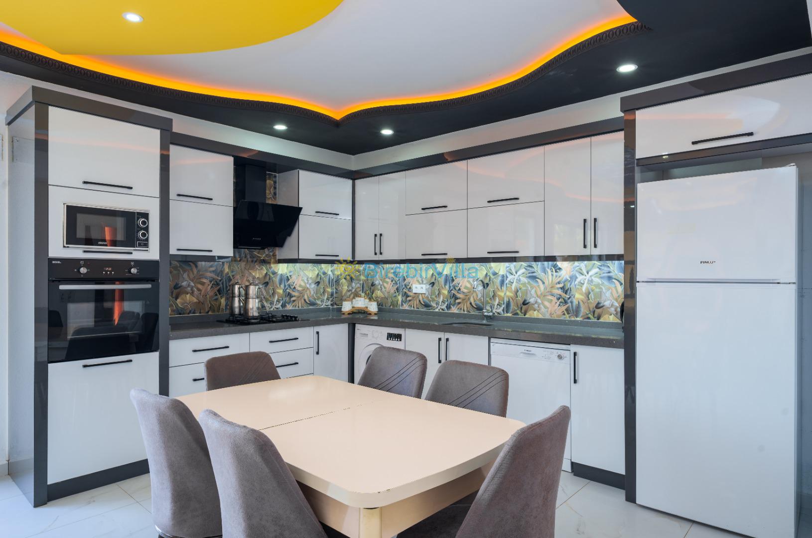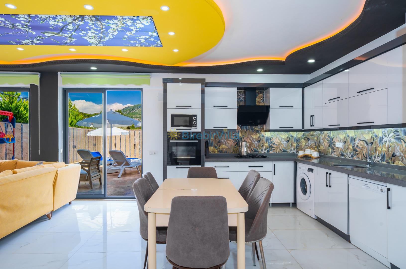 Mutfak: Açık mutfak, 10 kişi ve daha fazla kişiye yetecek kadar mutfak malzemesi, bulaşık makinesi, buzdolabı, çamaşır makinesi, kahve makinesi, mikrodalga fırın, fırın, 4'lü ocak, 6 kişilik yemek takımı bulunmaktadır. Mutfaktan havuza çıkışımız mevcuttur.