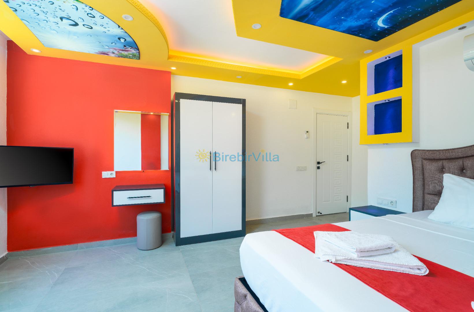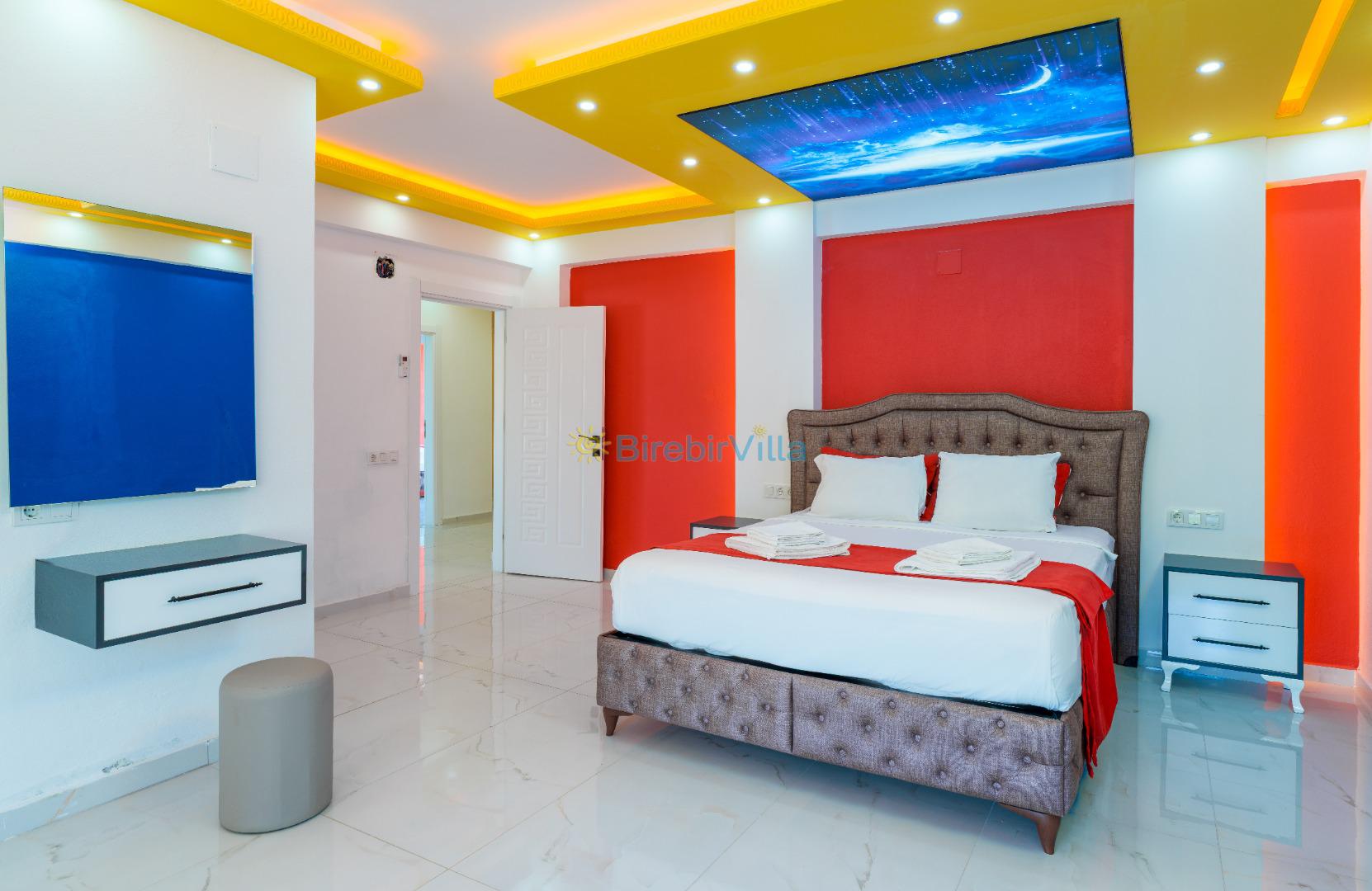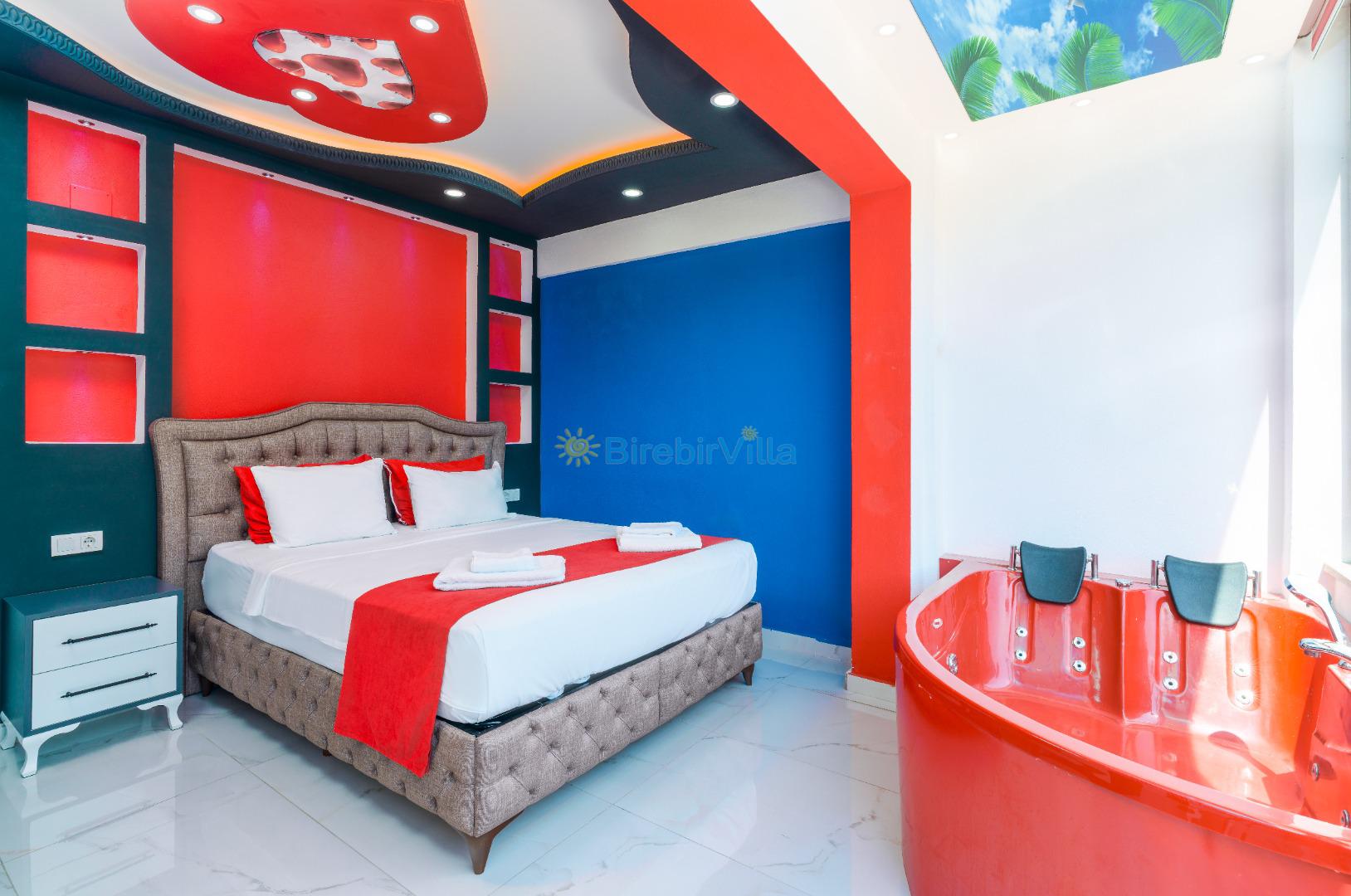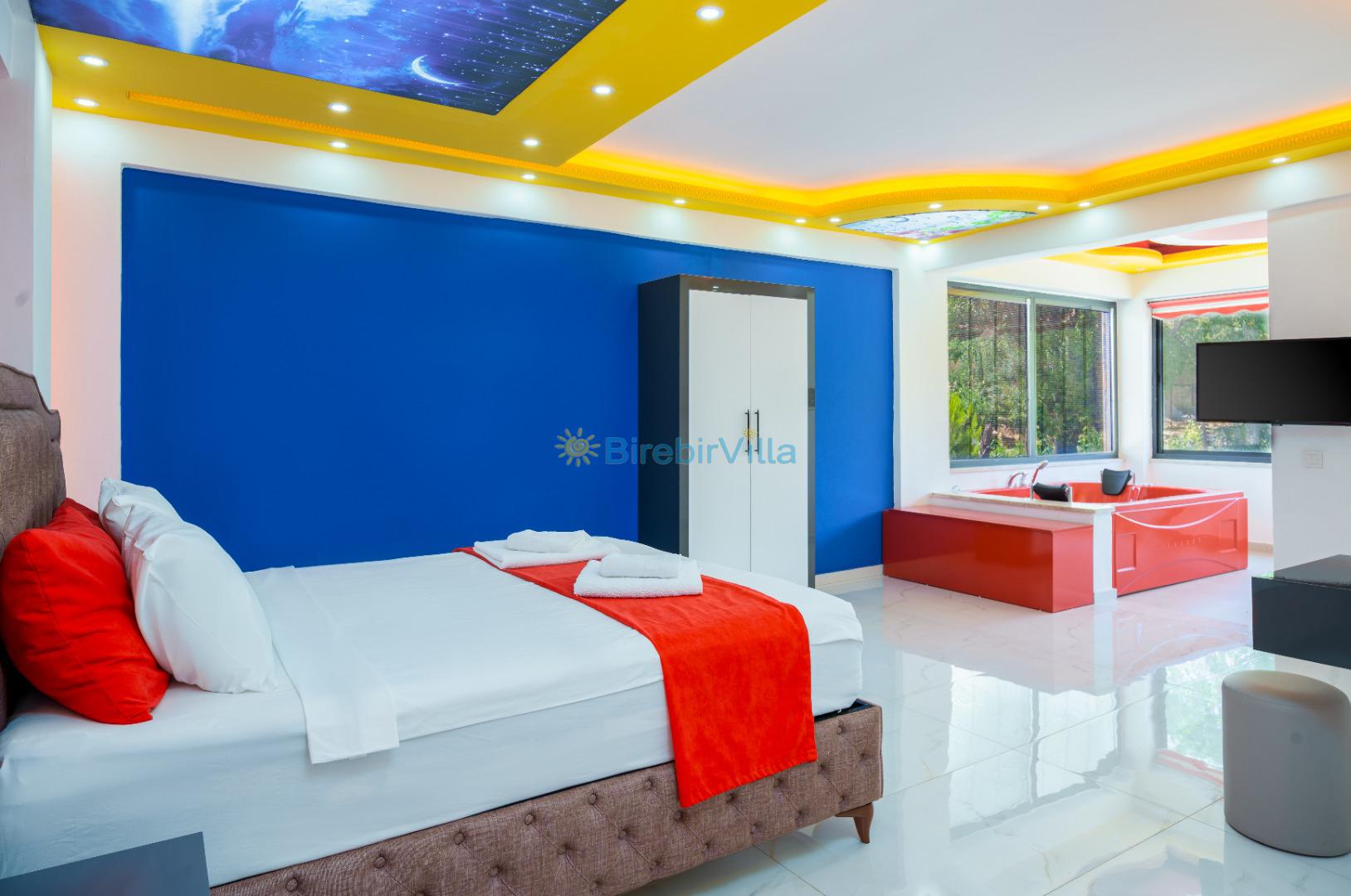 2.Yatak odası: 1 adet çift kişilik yatak, jakuzi, elbise dolabı, komodin, klima, tuvalet ve banyo bulunmaktadır.