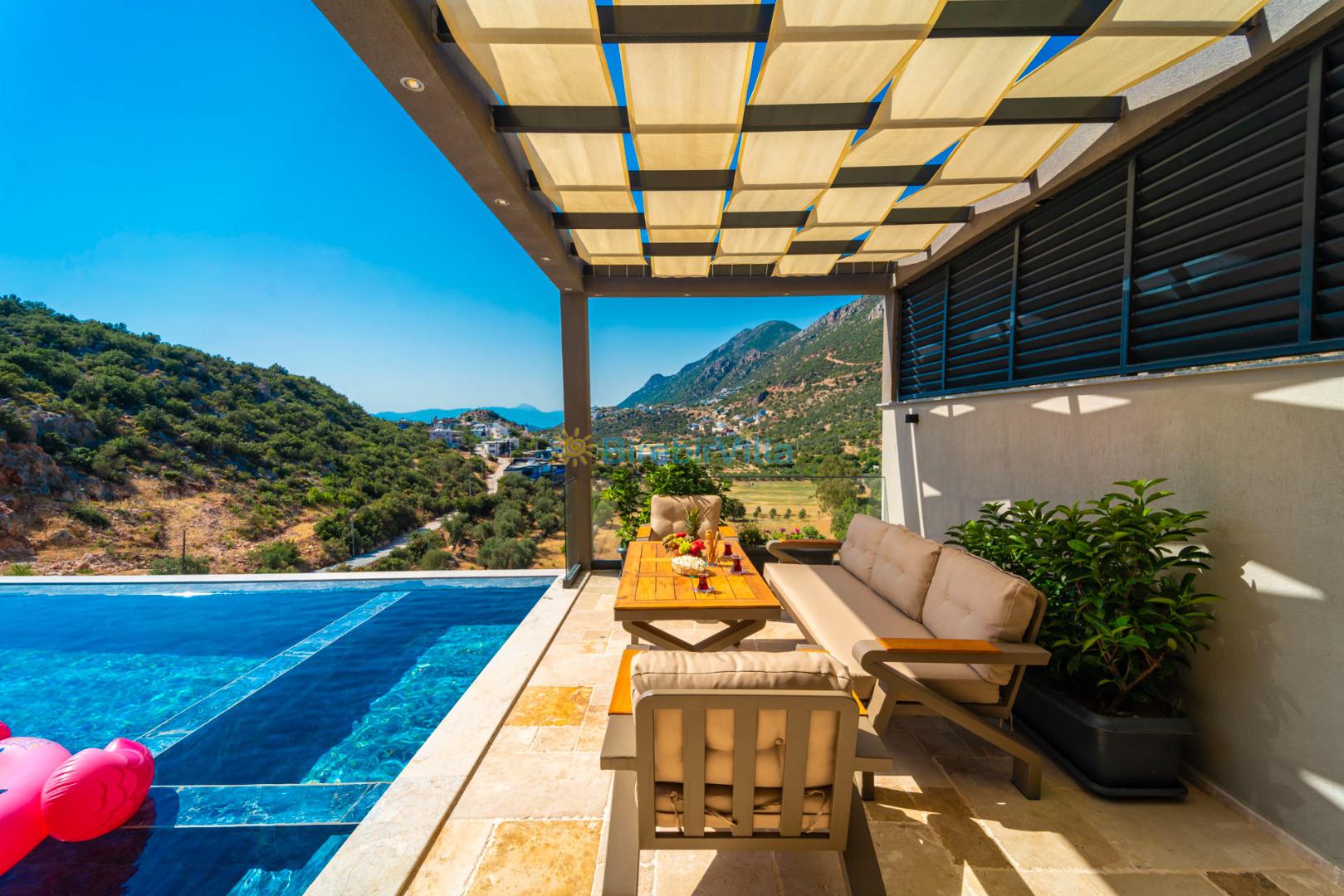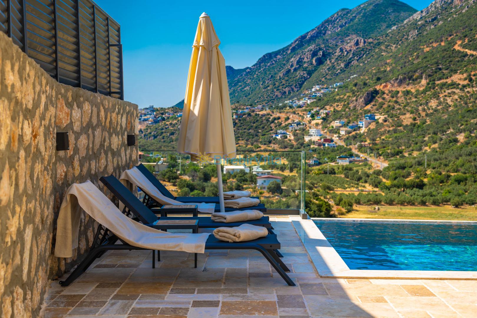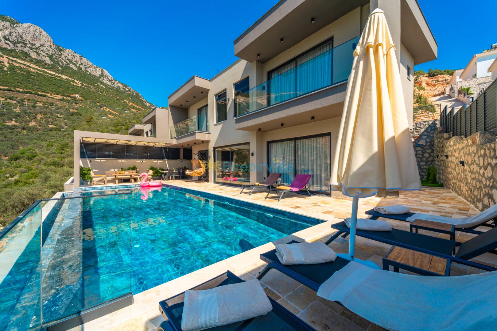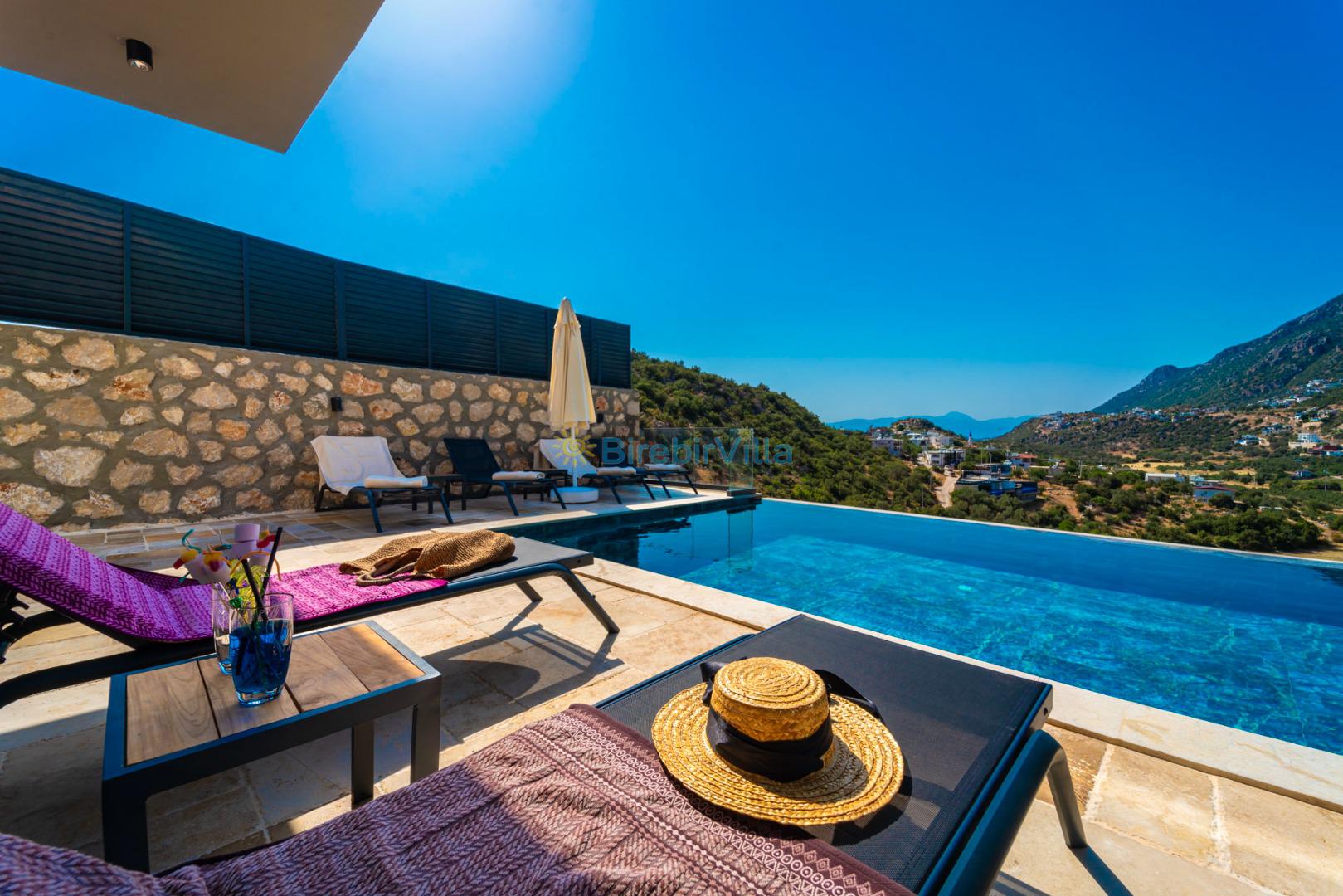 Kalkan’ın gözde bölgelerinden Ordu mevkiinde yer alan Villa Divane, eşsiz deniz ve doğa manzarasıyla lüks bir tatil deneyimi sunan özel bir kiralık villadır. 3 yatak odalı ve 6 kişi konaklama kapasiteli olan bu villa, özellikle aileler ve arkadaş grupları için konforlu ve huzurlu bir konaklama imkânı sağlar. Villa Divane, özel yüzme havuzu ve çocuk havuzu ile hem yetişkinler hem de çocuklar için keyifli bir tatil ortamı sunar. Ayrıca villada bulunan hamam ve sauna sayesinde yılın tüm yorgunluğunu atabileceğiniz ayrıcalıklı bir konaklama deneyimi yaşayabilirsiniz.Modern mimarisi ve şık dekorasyonuyla dikkat çeken Villa Divane, Kalkan kiralık villa seçenekleri arasında öne çıkmaktadır. Doğa ile iç içe konumu, sakin atmosferi ve sunduğu üst düzey olanaklar sayesinde unutulmaz bir villa tatili için ideal bir tercihtir.