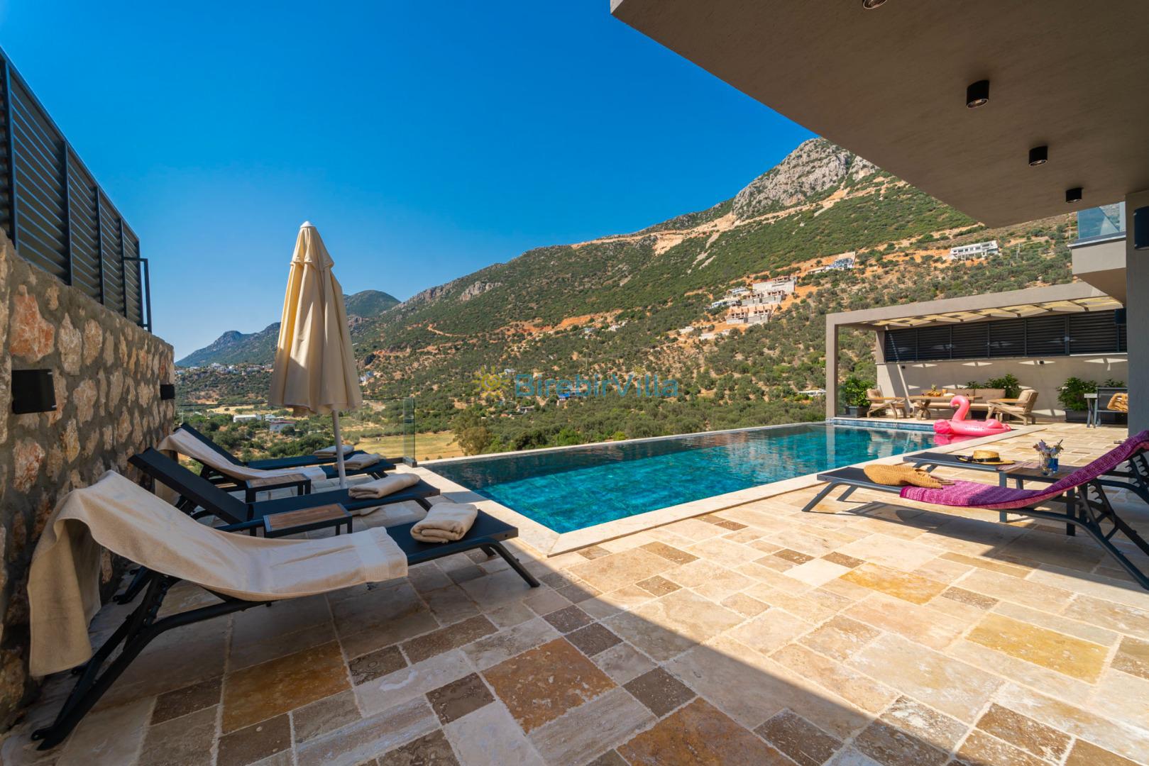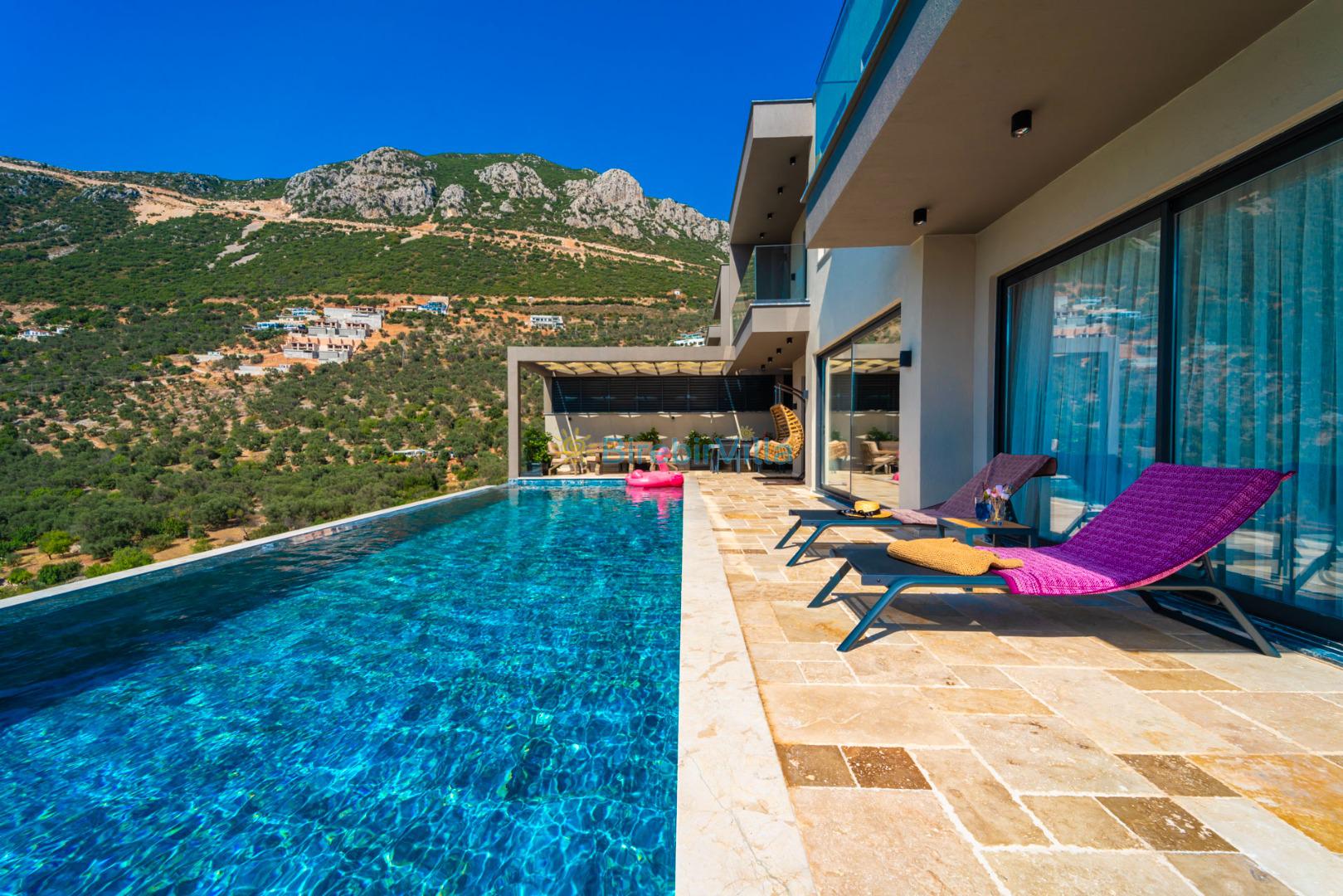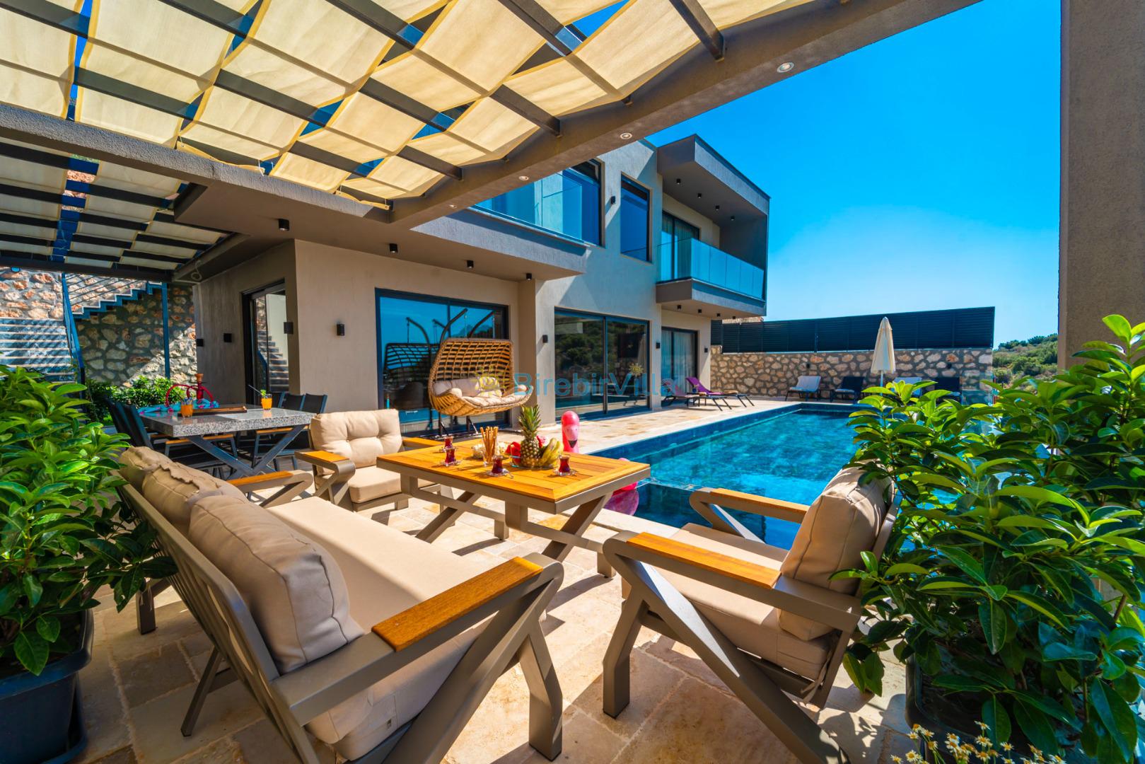 Kalkan’ın gözde bölgelerinden Ordu mevkiinde yer alan Villa Divane, eşsiz deniz ve doğa manzarasıyla lüks bir tatil deneyimi sunan özel bir kiralık villadır. 3 yatak odalı ve 6 kişi konaklama kapasiteli olan bu villa, özellikle aileler ve arkadaş grupları için konforlu ve huzurlu bir konaklama imkânı sağlar. Villa Divane, özel yüzme havuzu ve çocuk havuzu ile hem yetişkinler hem de çocuklar için keyifli bir tatil ortamı sunar. Ayrıca villada bulunan hamam ve sauna sayesinde yılın tüm yorgunluğunu atabileceğiniz ayrıcalıklı bir konaklama deneyimi yaşayabilirsiniz.Modern mimarisi ve şık dekorasyonuyla dikkat çeken Villa Divane, Kalkan kiralık villa seçenekleri arasında öne çıkmaktadır. Doğa ile iç içe konumu, sakin atmosferi ve sunduğu üst düzey olanaklar sayesinde unutulmaz bir villa tatili için ideal bir tercihtir.