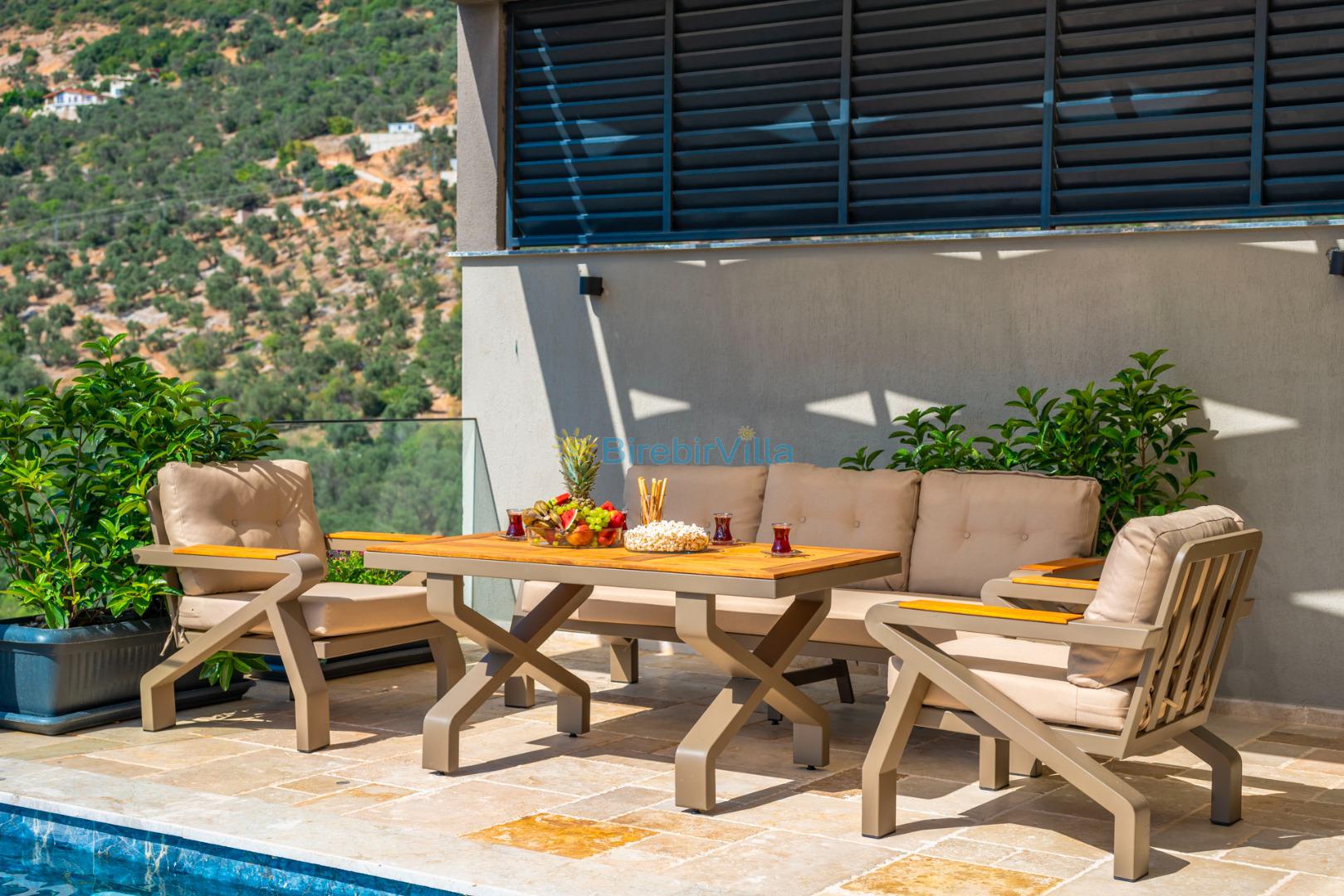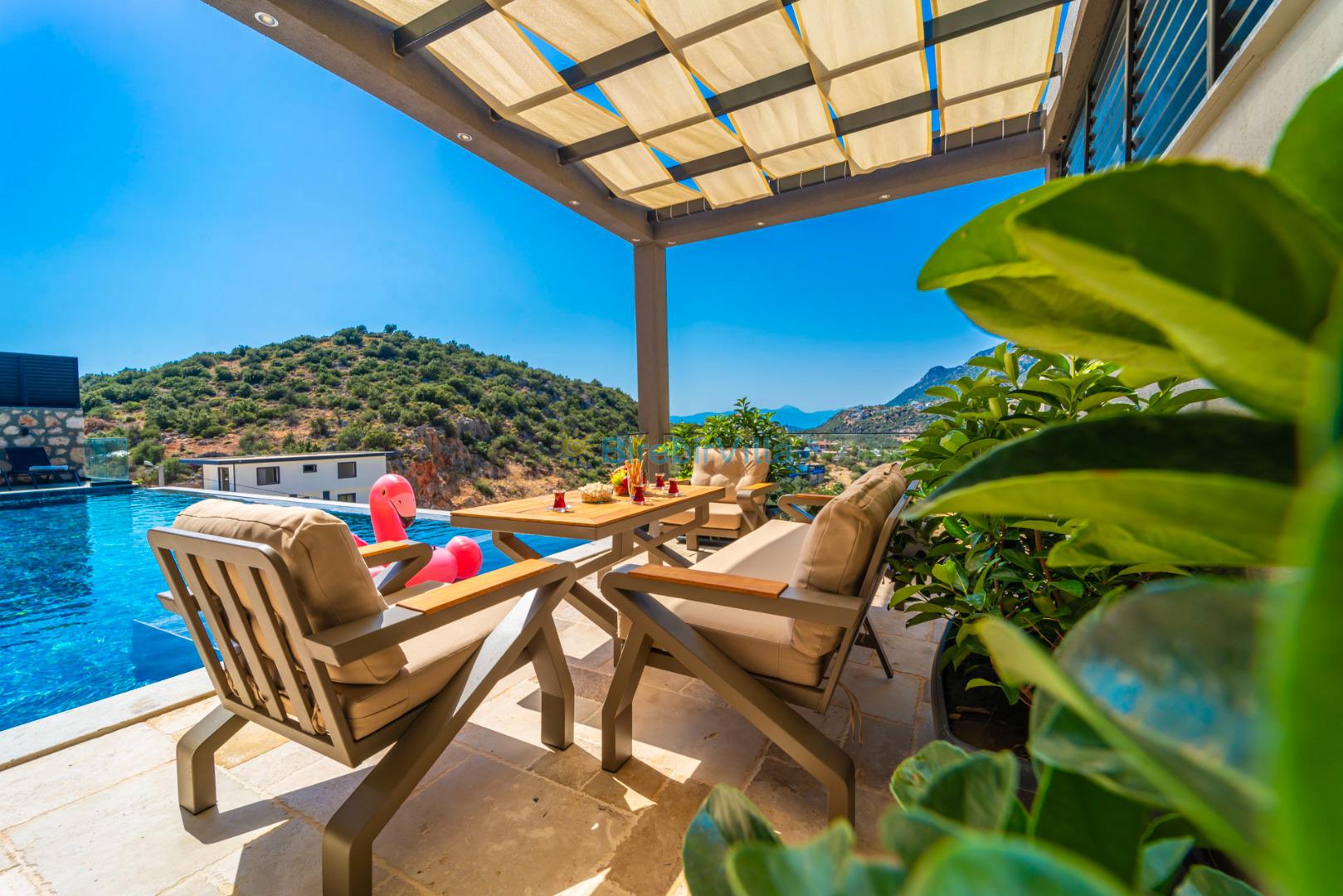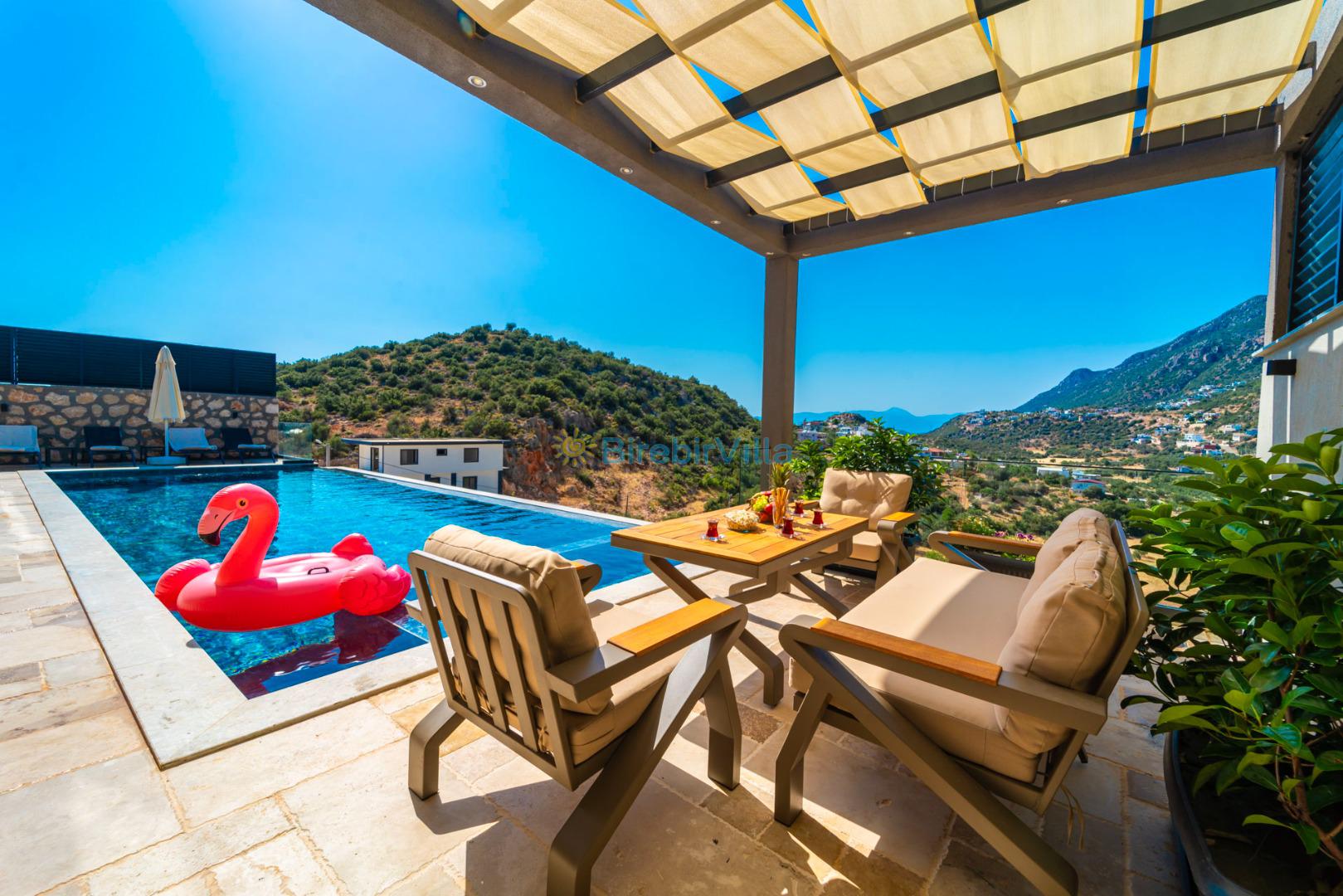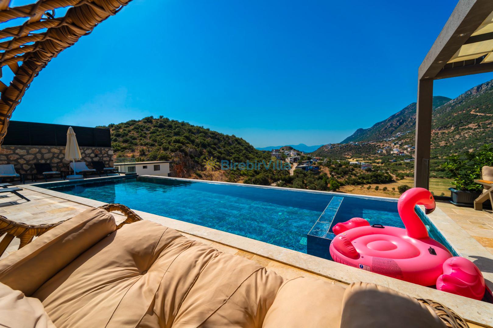 Kalkan’ın gözde bölgelerinden Ordu mevkiinde yer alan Villa Divane, eşsiz deniz ve doğa manzarasıyla lüks bir tatil deneyimi sunan özel bir kiralık villadır. 3 yatak odalı ve 6 kişi konaklama kapasiteli olan bu villa, özellikle aileler ve arkadaş grupları için konforlu ve huzurlu bir konaklama imkânı sağlar. Villa Divane, özel yüzme havuzu ve çocuk havuzu ile hem yetişkinler hem de çocuklar için keyifli bir tatil ortamı sunar. Ayrıca villada bulunan hamam ve sauna sayesinde yılın tüm yorgunluğunu atabileceğiniz ayrıcalıklı bir konaklama deneyimi yaşayabilirsiniz.Modern mimarisi ve şık dekorasyonuyla dikkat çeken Villa Divane, Kalkan kiralık villa seçenekleri arasında öne çıkmaktadır. Doğa ile iç içe konumu, sakin atmosferi ve sunduğu üst düzey olanaklar sayesinde unutulmaz bir villa tatili için ideal bir tercihtir.