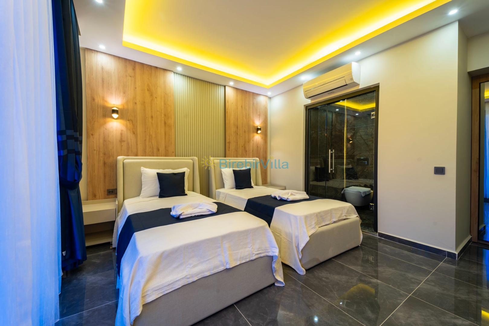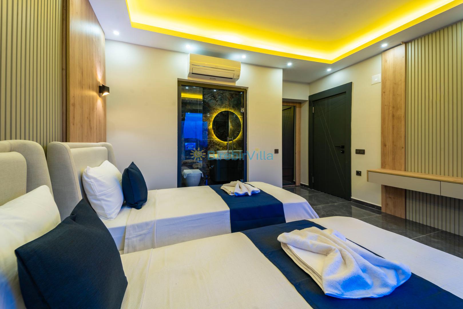 3.Yatak odası: Tek kişilik iki adet yatak, klima, ebeveyn banyosu, makyaj masası, elbise dolabı ve komodin bulunmaktadır.