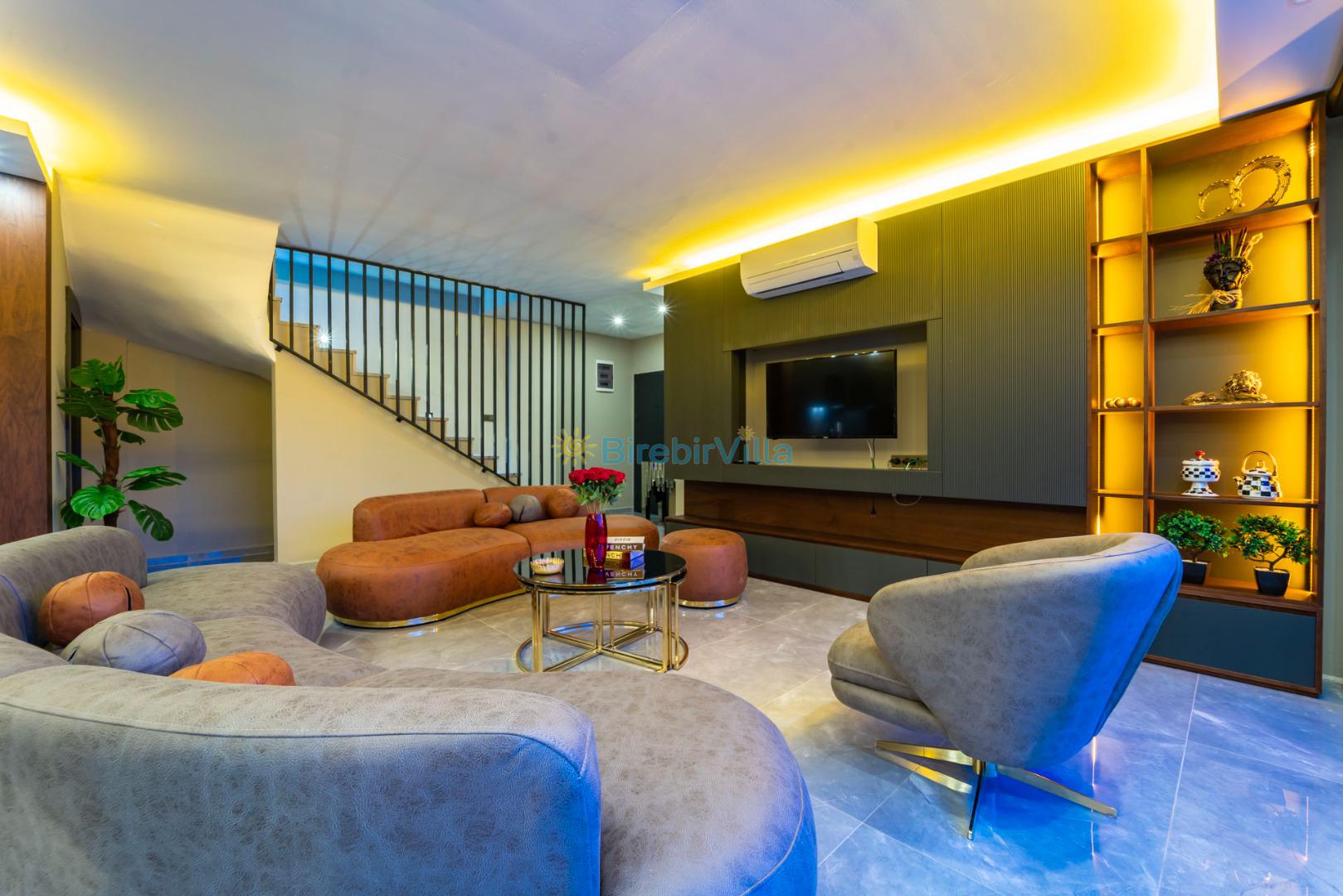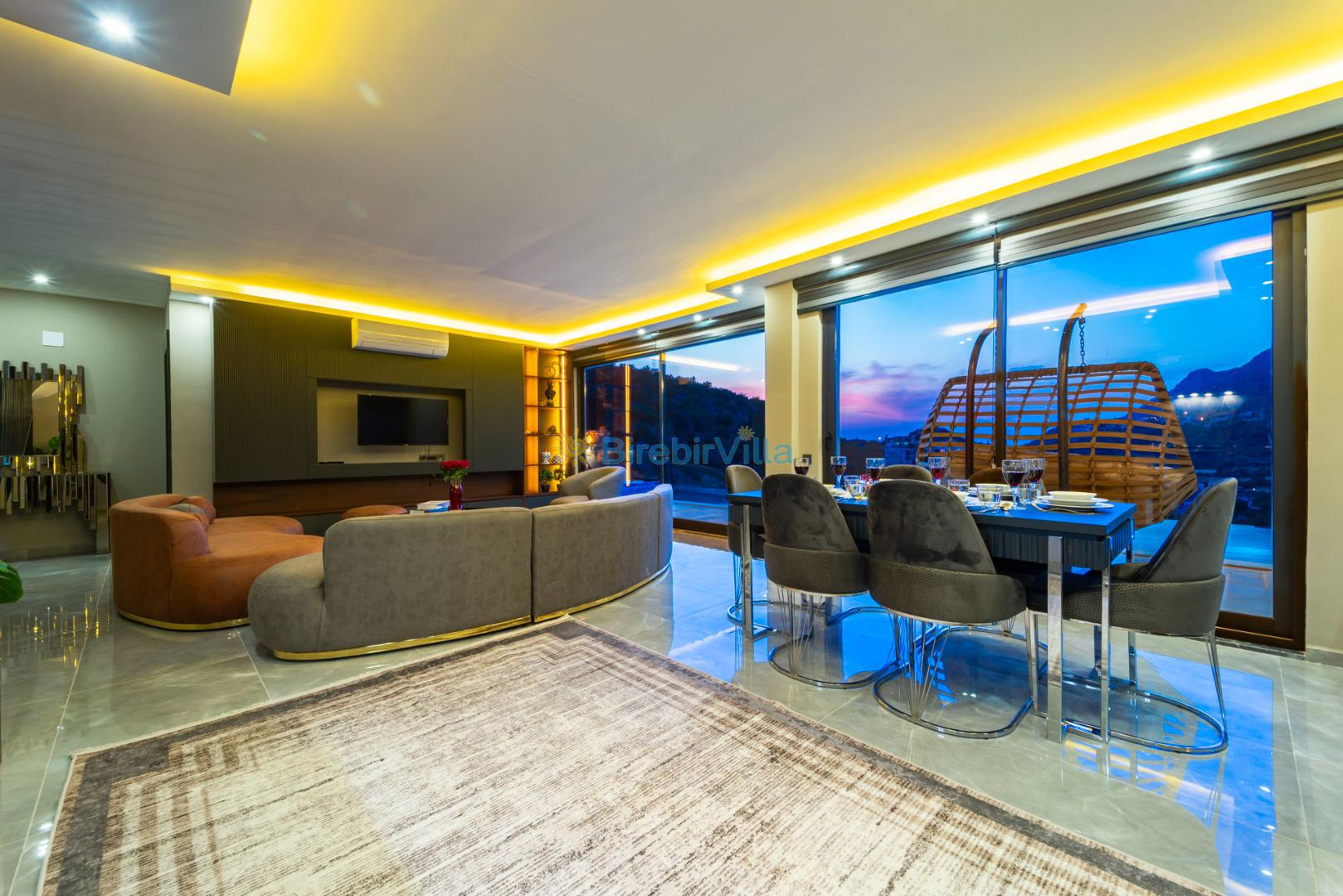 Salon: Modern koltuklar, 6 kişilik yemek masası, masa tenisi, Langırt, mama sandalyesi, Led tv, uydu alıcısı ve klima bulunmaktadır.