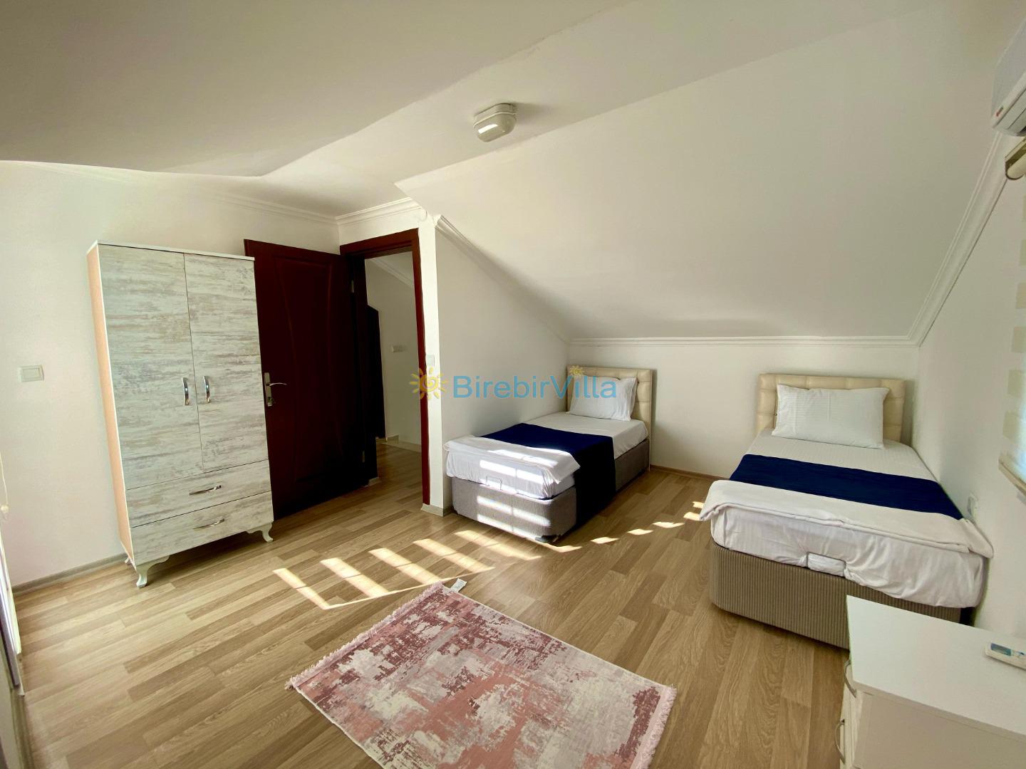 4. Yatak odası: İki adet tek kişilik yatak, klima, elbise dolabı ve komidin bulunmaktadır.