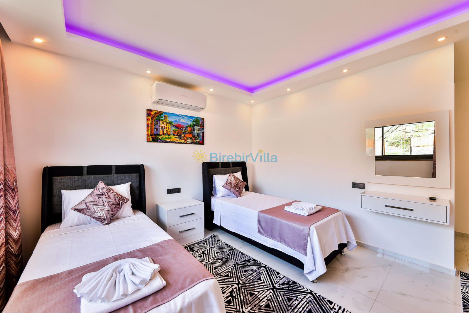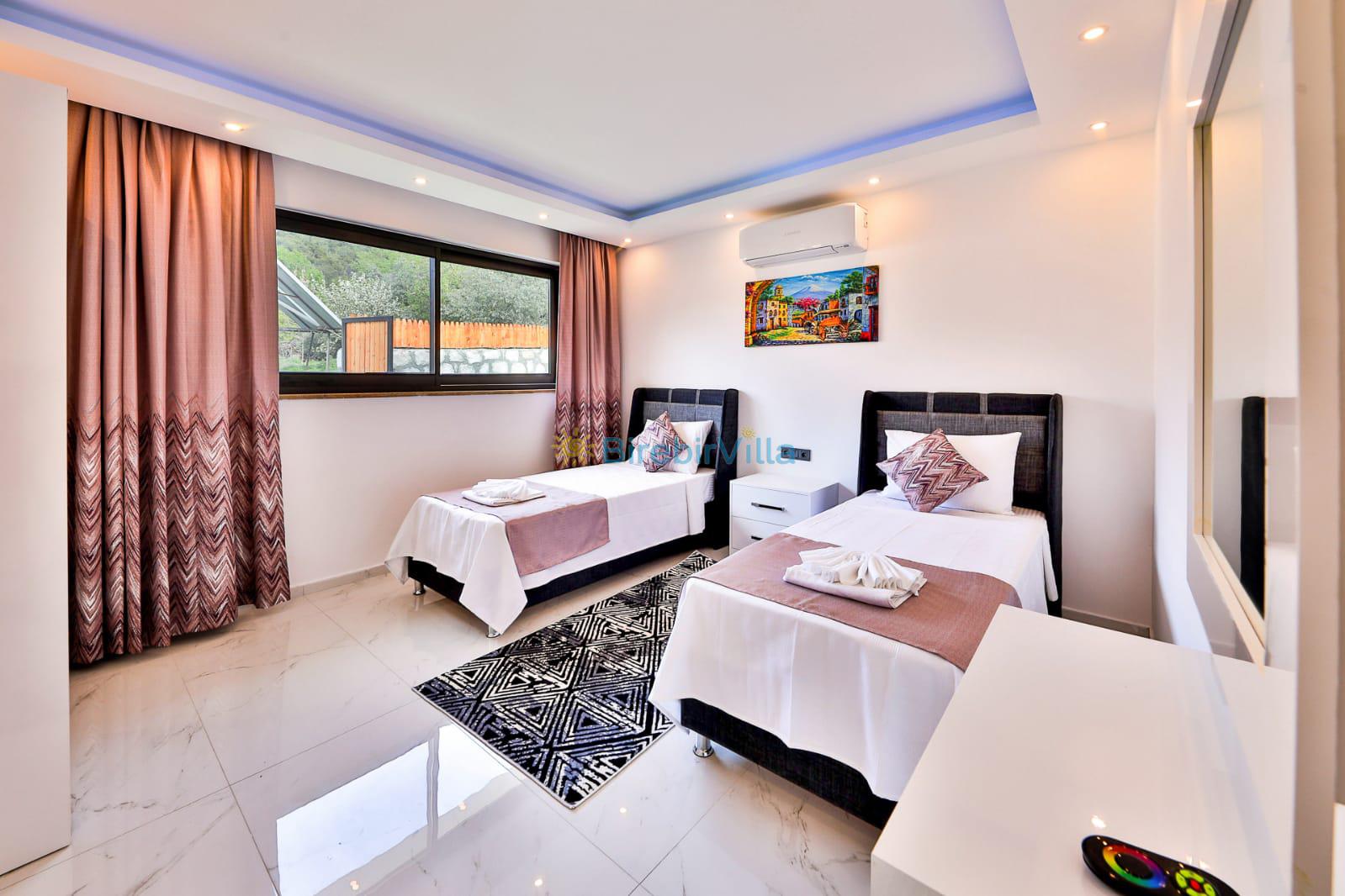 2.Yatak odası: 2 adet tek kişilik yatak, klima, komodin, makyaj masası, elbise dolabı ve ebeveyn banyo bulunmaktadır. .
