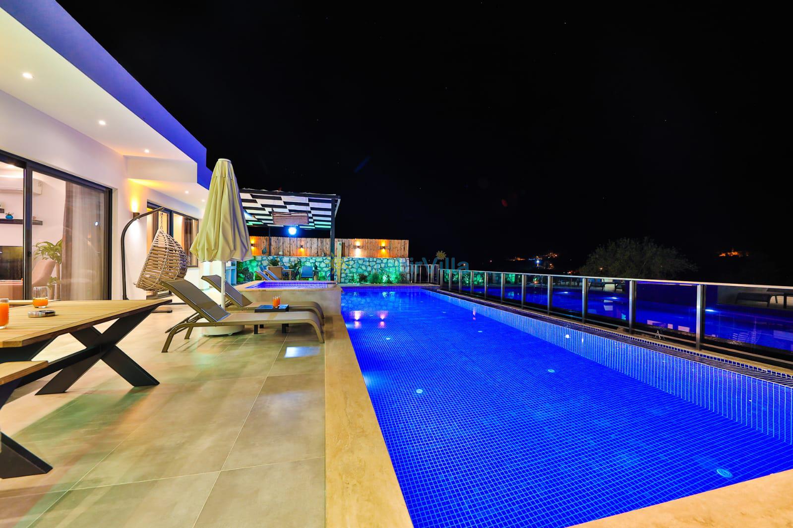 Villa Ercan, Antalya, Kalkan'ın Sarıbelen mevkisinde bulunan 3 yatak odalı 6 kişi konaklama kapasiteli özel havuzlu ve jakuzili muhafazakar villadır. Villamızın havuzu dışarıdan görünmediği için muhafazakar aileler ve balayı tatiline gelen çiftlerimiz için uygundur. Villamızda misafirlerimiz için her türlü araç-gereç eksiksiz olarak yer almaktadır. Geniş bahçesinde çocuk havuzu ve mangal alanı mevcuttur.