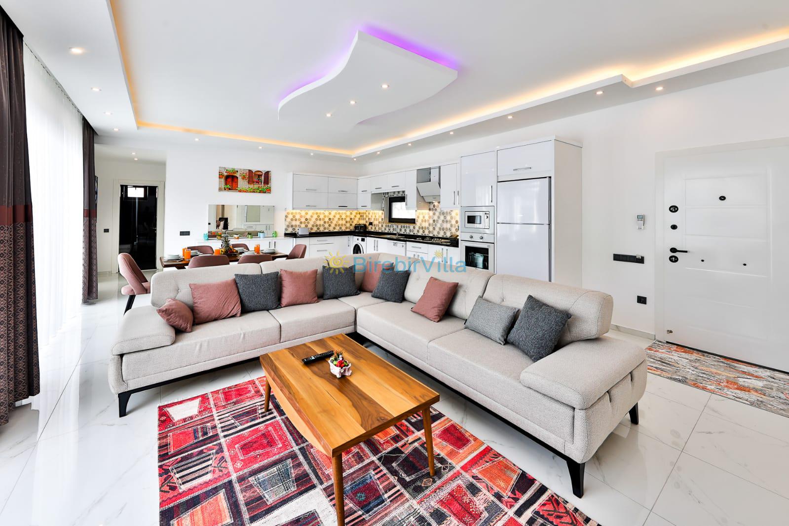 Salon: Modern oturma grubu, Lcd tv, uydu alıcısı ve 6 kişilik yemek masası bulunmaktadır.