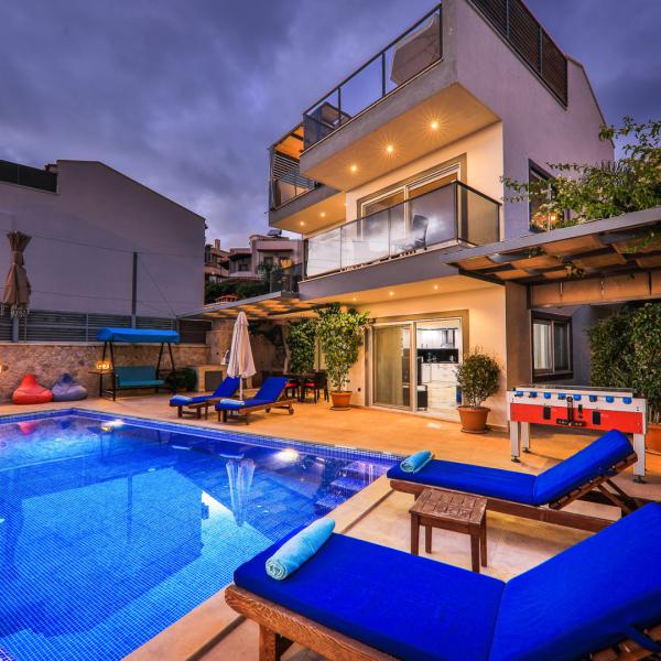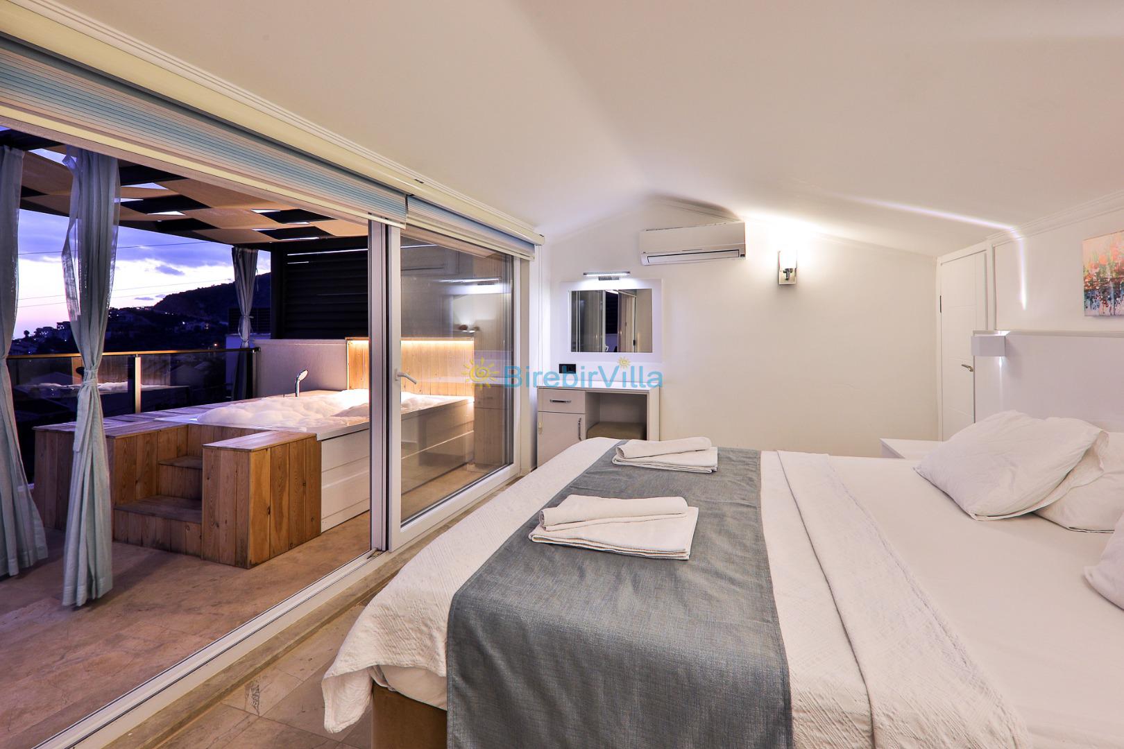 Villa Esrape, Kalkan’ın eşsiz doğası ve manzarasıyla öne çıkan konumunda yer alan, 3 yatak odalı ve 6 kişi konaklama kapasiteli, deniz manzaralı, açık jakuzili ve muhafazakar konseptte tasarlanmış lüks bir tatil villasıdır. Gözlerden uzak, korunaklı yapısıyla mahremiyete önem veren aileler ve balayı çiftleri için ideal bir konaklama imkânı sunar. Modern mimarisi ve konforlu yaşam alanlarıyla dikkat çeken villa, panoramik deniz manzarası eşliğinde keyifli bir tatil deneyimi vadeder. Kalkan muhafazakar villa, 6 kişilik deniz manzaralı villa, jakuzili lüks tatil villası ve korunaklı kiralık villa arayışında olan misafirler için Villa Esrape, huzur, konfor ve ayrıcalığı bir arada sunan seçkin bir tatil alternatifidir.