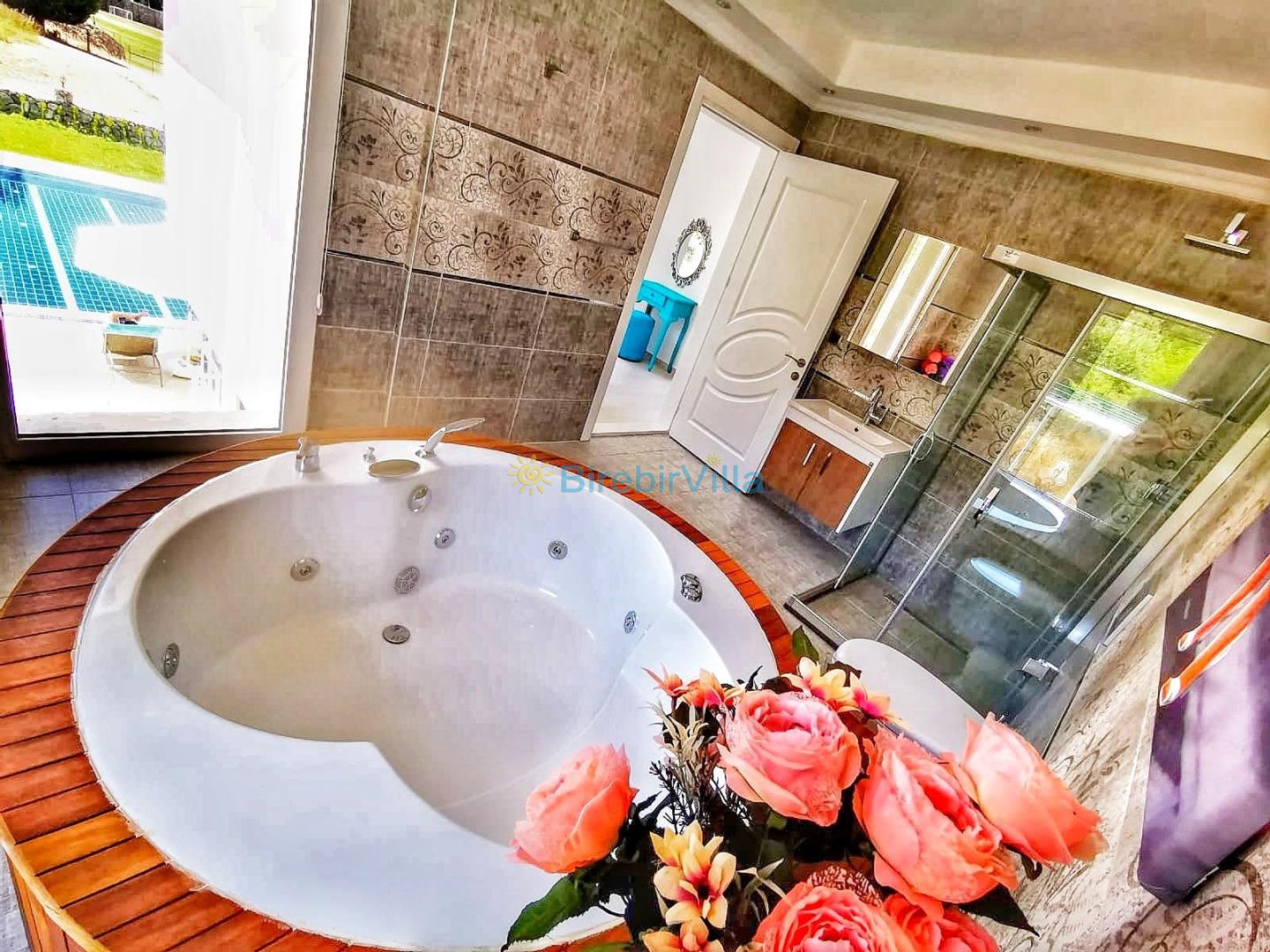 Not: Doğa ile iç içe yaşama sahibi olan tüm villalarımızda düzenli olarak ilaçlama yapılır. Buna rağmen çevrede haşere vb. olma ihtimali vardır. Havuzun korunaklı villalarımızda kesinlikle %100 görünmeme garantisi vermemekteyiz. Bu villalarımızda her zaman %10 sakınma payı mevcuttur. Sitemizde bulunan villa fotoğraflarının ekranı ekrana sığdırmak için 'Geniş Açılı Lens' ile çekilmektedir. Bu nedenle resimlerdeki objeler, gerçek boyutlardan daha büyük veya küçük görünebilmekte.
