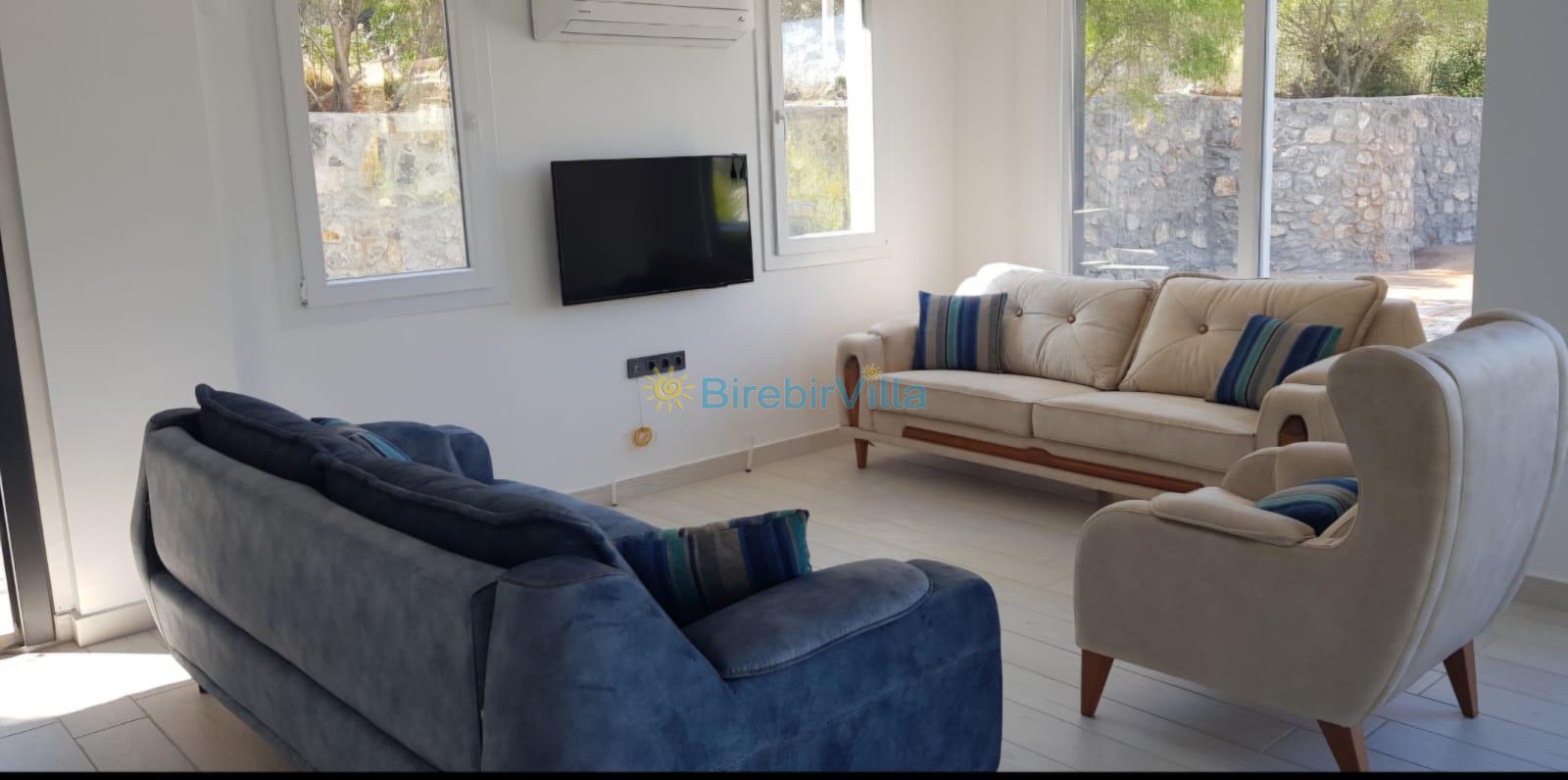 Salon: Açık mutfaklı salon, modern koltuklar, Lcd tv, uydu alıcısı, 7 kişilik yemek masası, klima ve havuz alanı çıkışı bulunmaktadır.