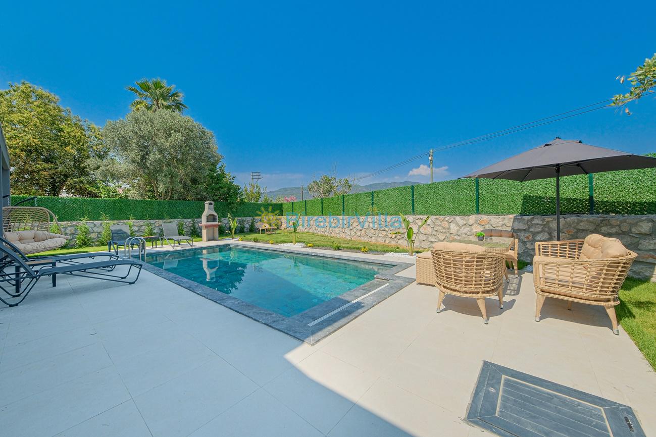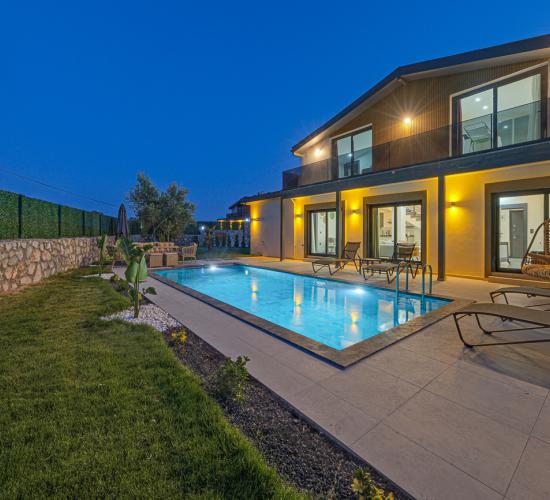Not: Doğa ile iç içe konuma sahip olan tüm villalarımızda düzenli olarak ilaçlama yapılır. Buna rağmen çevrede haşere vb. bulunma ihtimali vardır. Havuzu korunaklı villalarımızda kesinlikle %100 görünmeme garantisi vermemekteyiz. Bu villalarımızda her zaman %10 sakınma payı mevcuttur. Sitemizde bulunan villa fotoğraflarının, görüntüyü ekrana sığdırmak için ’Geniş Açılı Lens’ ile çekilmektedir. Bu sebeple resimlerdeki objeler, gerçek boyutlarından daha büyük veya küçük görünebilmekte.