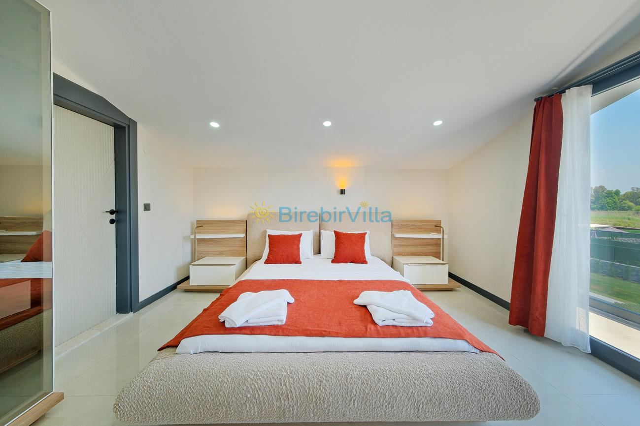 2.Yatak odası: Çift kişilik yatak, klima, ebeveyn banyo, jakuzi, makyaj masası, komodin, elbise dolabı ve balkon bulunmaktadır.