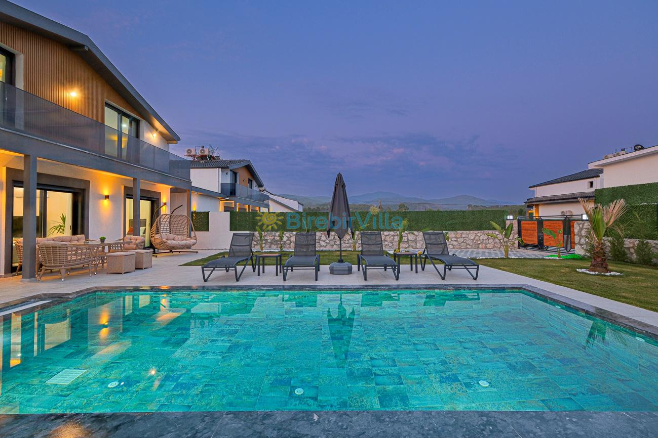 Not: Doğa ile iç içe konuma sahip olan tüm villalarımızda düzenli olarak ilaçlama yapılır. Buna rağmen çevrede haşere vb. bulunma ihtimali vardır. Havuzu korunaklı villalarımızda kesinlikle %100 görünmeme garantisi vermemekteyiz. Bu villalarımızda her zaman %10 sakınma payı mevcuttur. Sitemizde bulunan villa fotoğraflarının, görüntüyü ekrana sığdırmak için ’Geniş Açılı Lens’ ile çekilmektedir. Bu sebeple resimlerdeki objeler, gerçek boyutlarından daha büyük veya küçük görünebilmekte.
