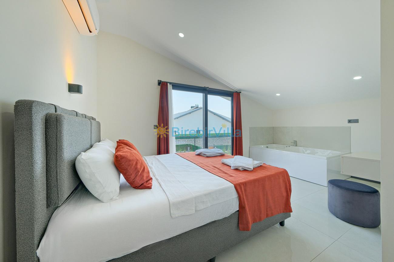 2.Yatak odası: Çift kişilik yatak, klima, ebeveyn banyo, jakuzi, makyaj masası, komodin, elbise dolabı ve balkon bulunmaktadır.