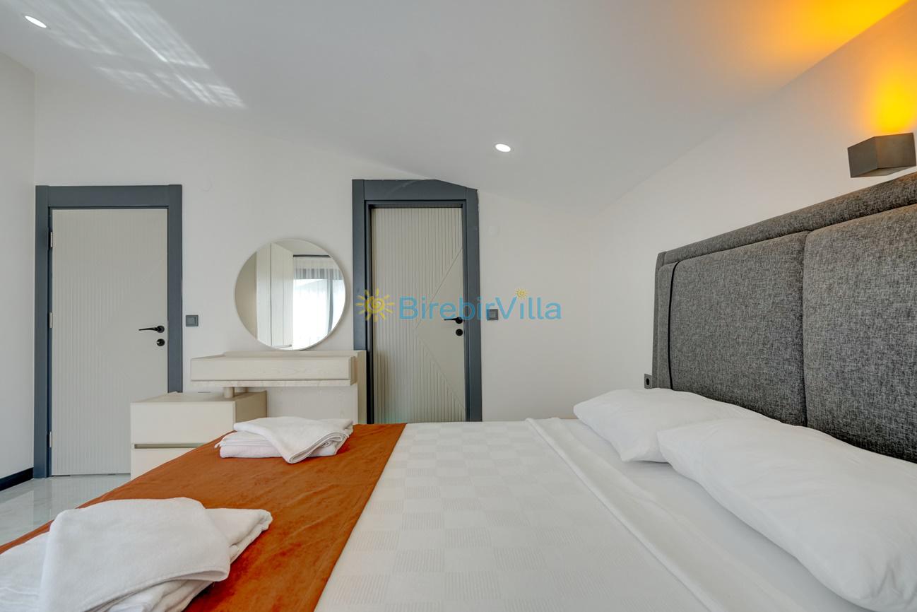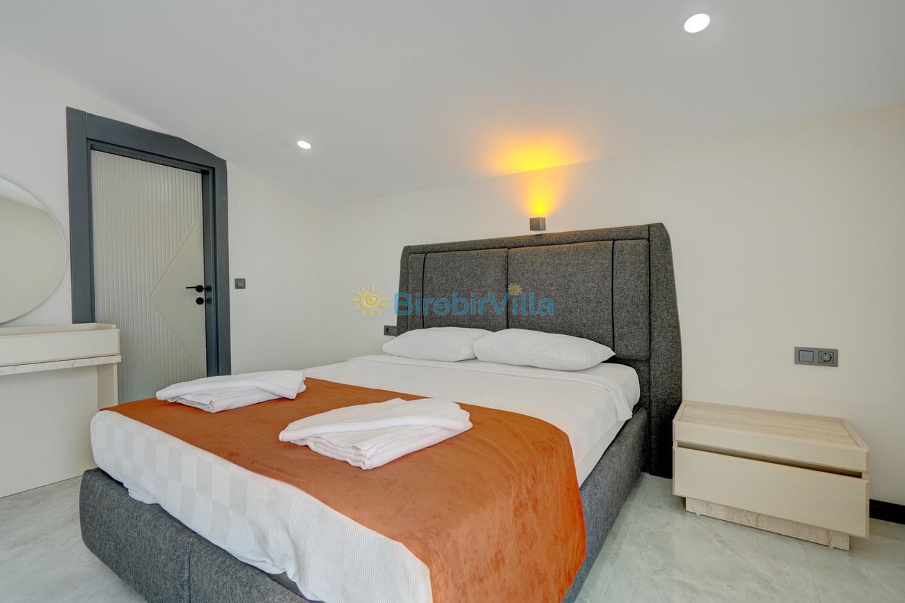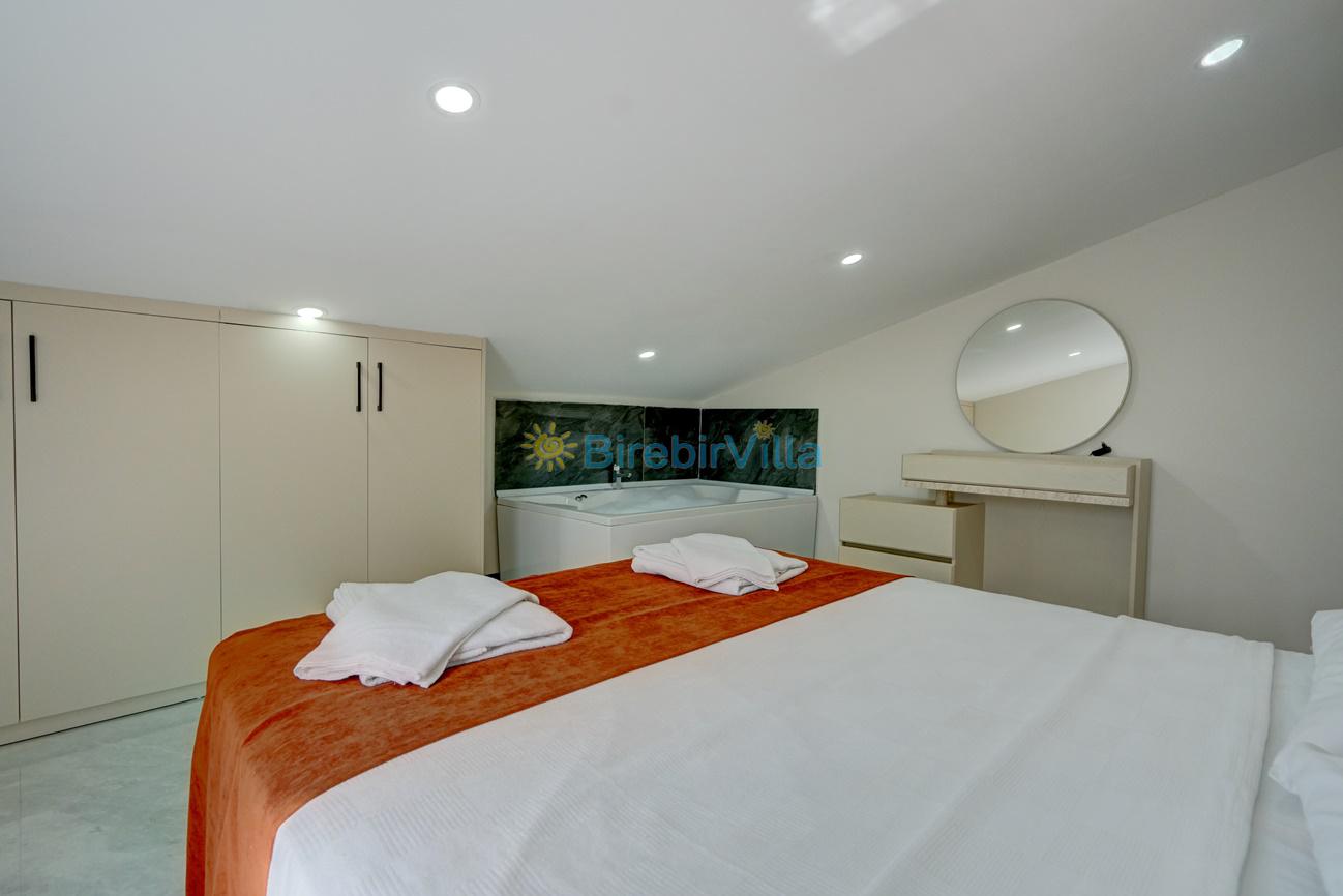 1.Yatak odası: Çift kişilik yatak, klima, ebeveyn banyo, jakuzi, komodin, elbise dolabı ve balkon bulunmaktadır.