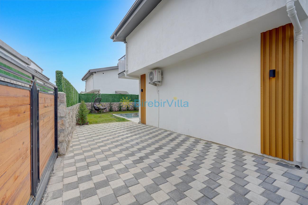 Not: Doğa ile iç içe konuma sahip olan tüm villalarımızda düzenli olarak ilaçlama yapılır. Buna rağmen çevrede haşere vb. bulunma ihtimali vardır. Havuzu korunaklı villalarımızda kesinlikle %100 görünmeme garantisi vermemekteyiz. Bu villalarımızda her zaman %10 sakınma payı mevcuttur. Sitemizde bulunan villa fotoğraflarının, görüntüyü ekrana sığdırmak için ’Geniş Açılı Lens’ ile çekilmektedir. Bu sebeple resimlerdeki objeler, gerçek boyutlarından daha büyük veya küçük görünebilmekte.