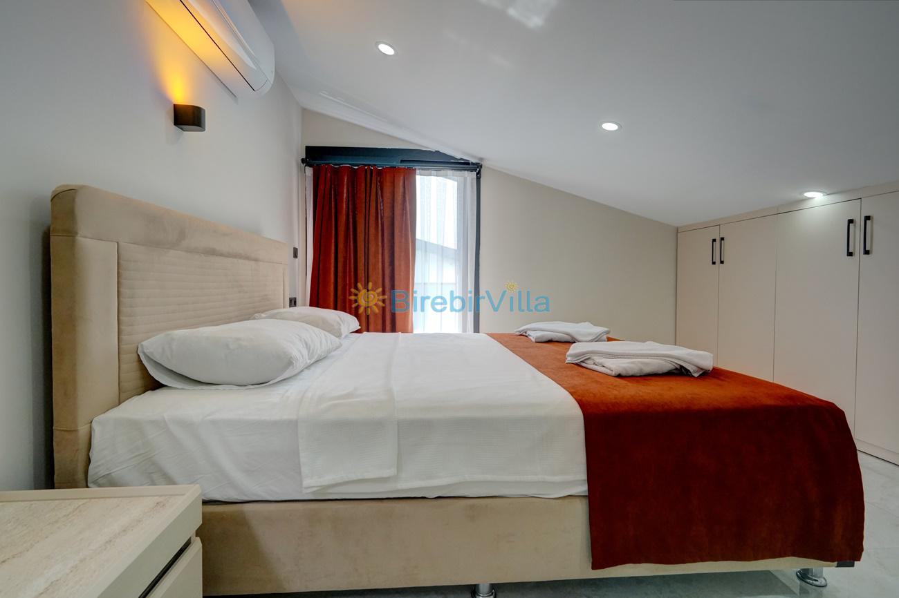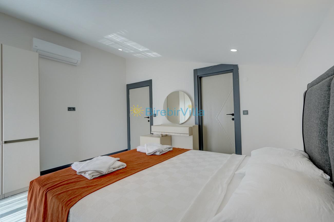 1.Yatak odası: Çift kişilik yatak, klima, ebeveyn banyo, jakuzi, komodin, elbise dolabı ve balkon bulunmaktadır.