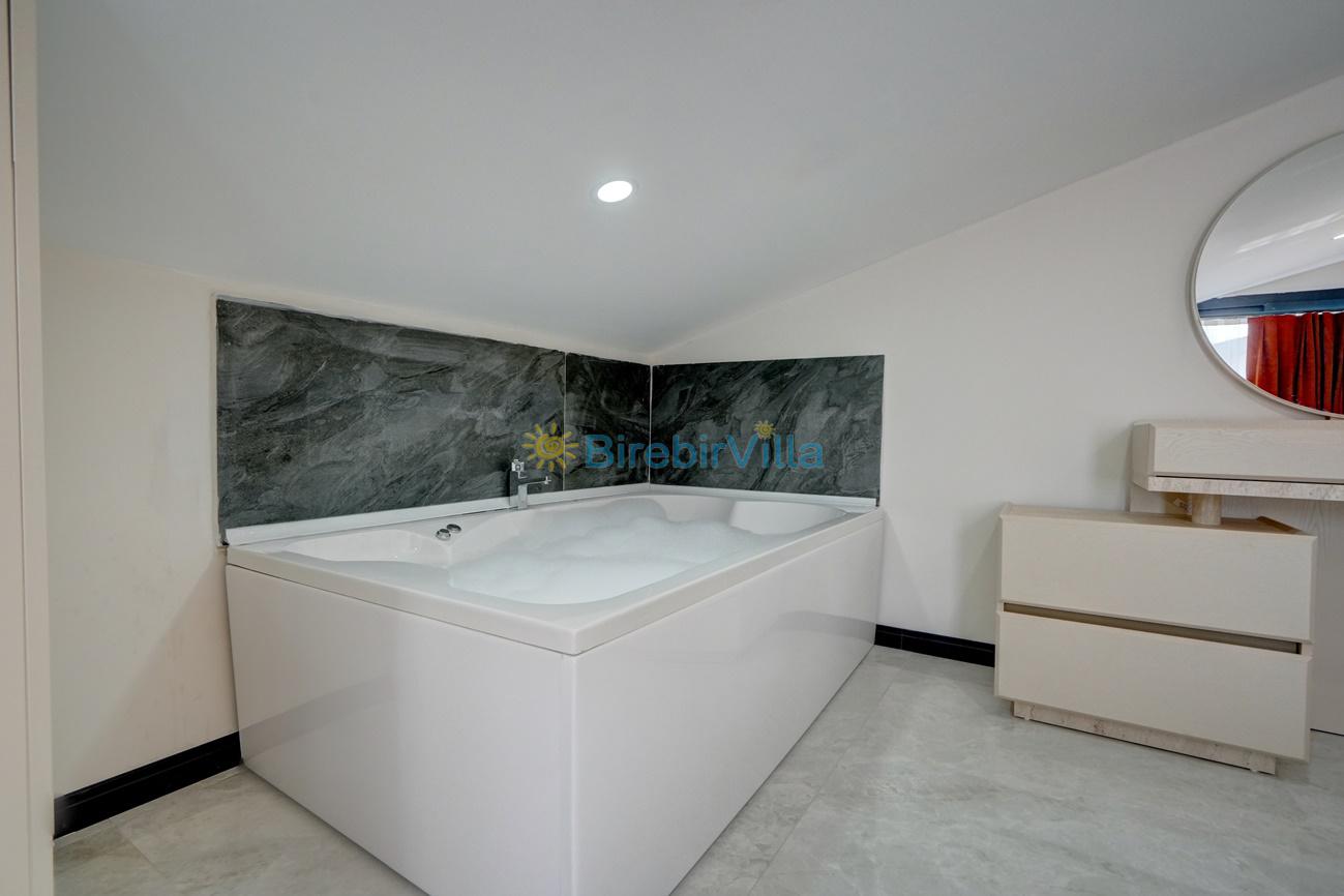 Not: Doğa ile iç içe konuma sahip olan tüm villalarımızda düzenli olarak ilaçlama yapılır. Buna rağmen çevrede haşere vb. bulunma ihtimali vardır. Havuzu korunaklı villalarımızda kesinlikle %100 görünmeme garantisi vermemekteyiz. Bu villalarımızda her zaman %10 sakınma payı mevcuttur. Sitemizde bulunan villa fotoğraflarının, görüntüyü ekrana sığdırmak için ’Geniş Açılı Lens’ ile çekilmektedir. Bu sebeple resimlerdeki objeler, gerçek boyutlarından daha büyük veya küçük görünebilmekte.