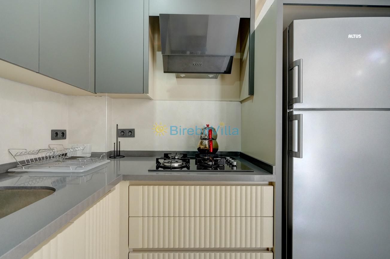 Mutfak: Açık planlı mutfak, 8 kişi ve daha fazla kişiye yetecek kadar mutfak malzemeleri, bulaşık makinesi, çamaşır makinesi, fırın, ocak, buzdolabı, çaycı, kahve makinesi , tost makinesi , mikrodalga fırın , çaydanlık ve kettle bulunmaktadır.