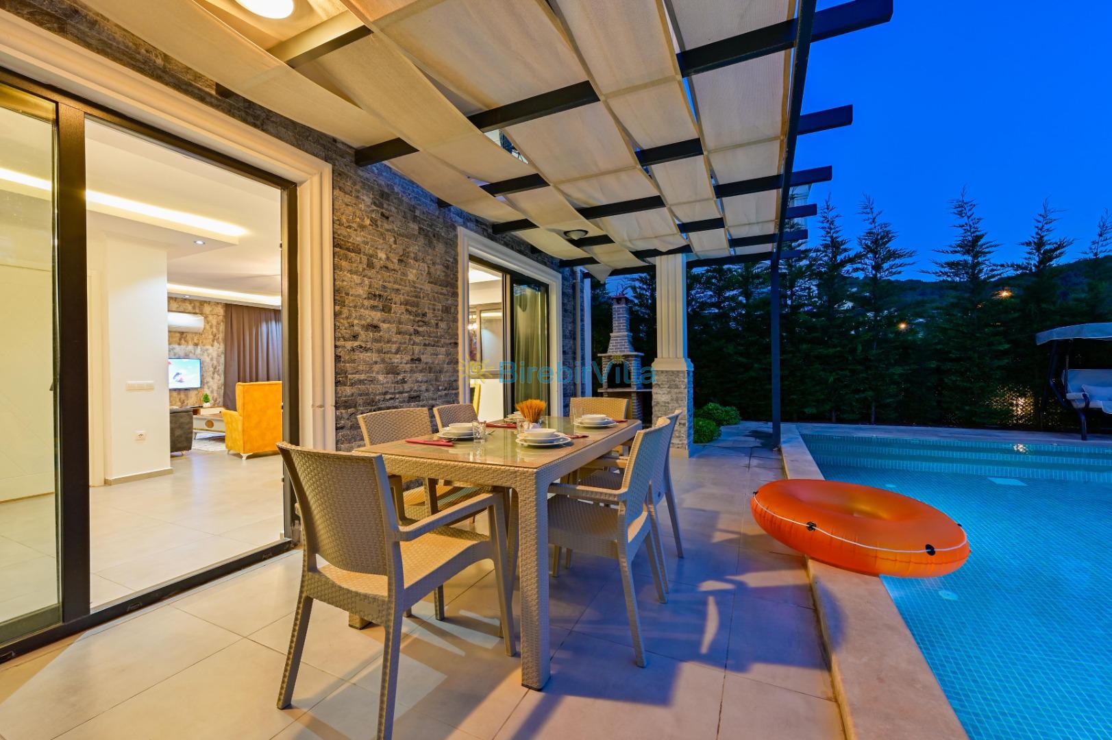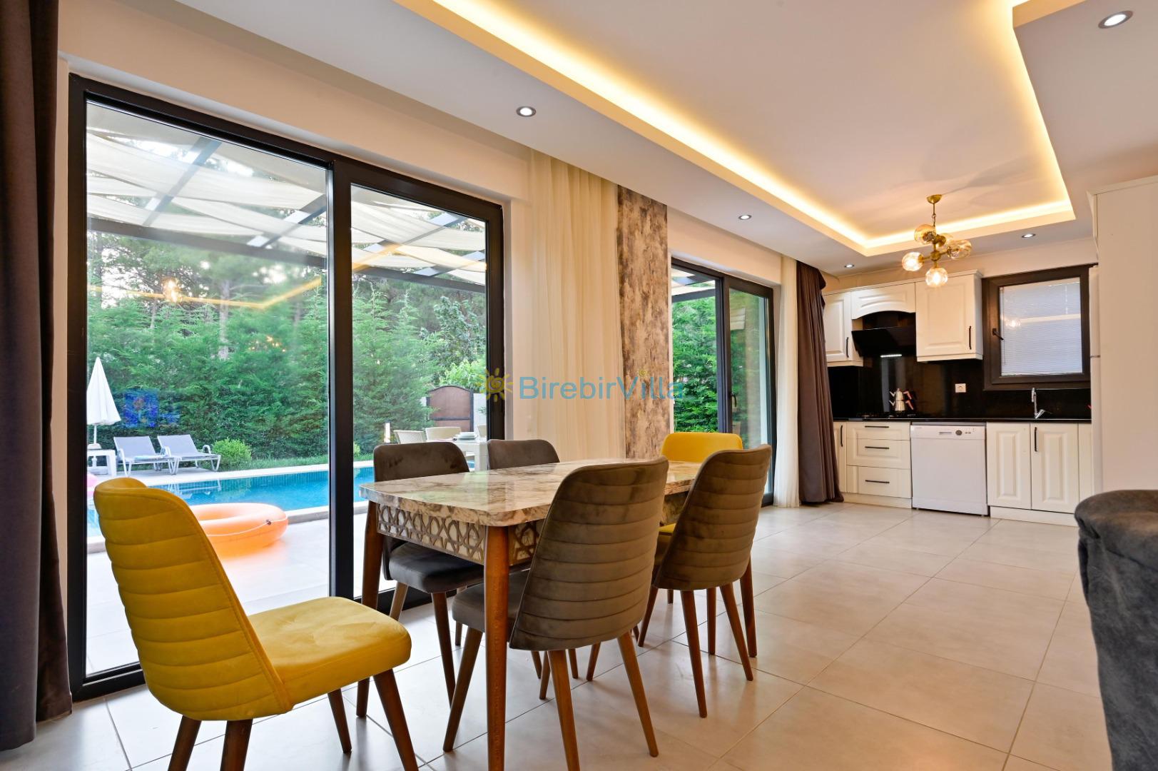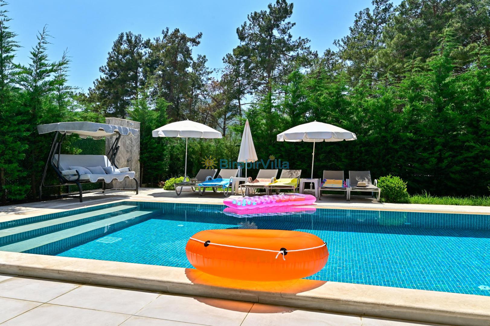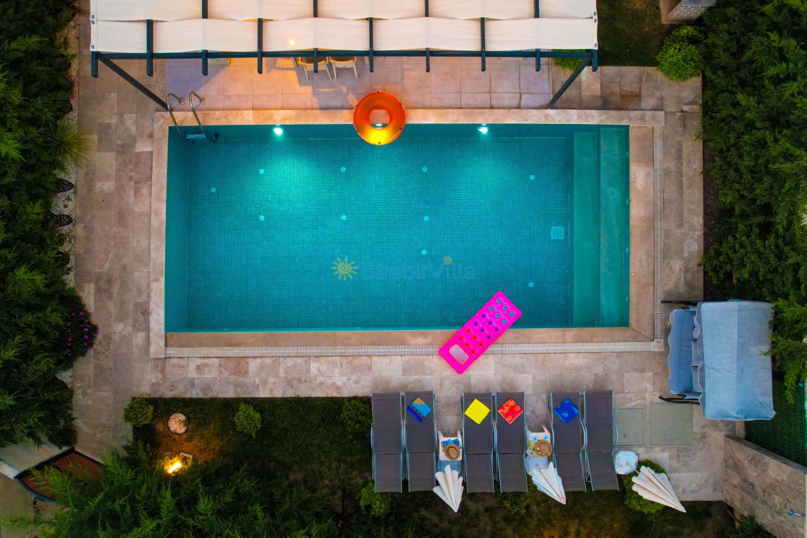 Not: Doğa ile iç içe konuma sahip olan tüm villalarımızda düzenli olarak ilaçlama yapılır. Buna rağmen çevrede haşere vb. bulunma ihtimali vardır. Havuzu korunaklı villalarımızda kesinlikle %100 görünmememe garantisi vermemekteyiz. Bu villalarımızda her zaman %10 sakınma payı mevcuttur. Sitemizde bulunan villa fotoğraflarının, görüntüyü ekrana sığdırmak için ’Geniş Açılı Lens’ ile çekilmektedir. Bu sebeple resimlerdeki objeler, gerçek boyutlarından daha büyük veya küçük görünebilmekte.