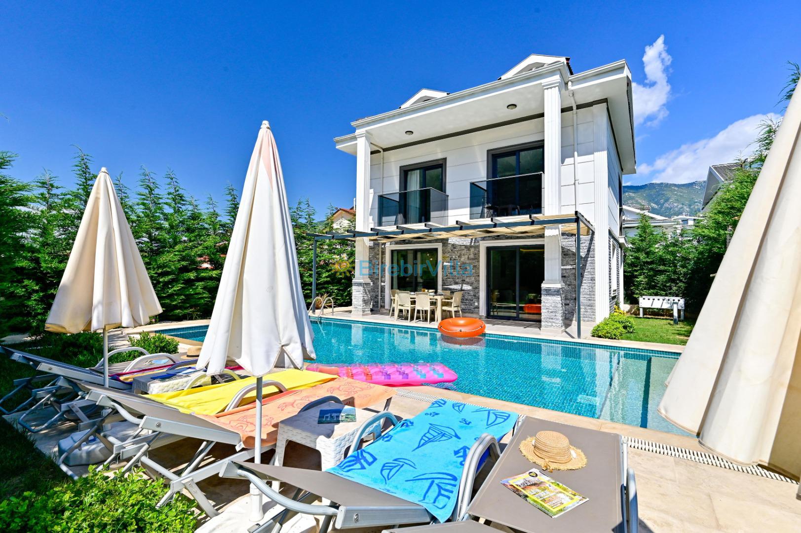 Villa Gül Pembe, Ölüdeniz’in en popüler bölgelerinden biri olan Hisarönü’nde konumlanan, özel havuzlu kiralık villa seçenekleri arasında konforu ve modern yapısıyla öne çıkan eşsiz bir tatil villasıdır. Doğa ile iç içe konumu, huzurlu atmosferi ve merkezi noktalara yakınlığı sayesinde hem dinlenmek hem de eğlenceli bir tatil geçirmek isteyen misafirler için ideal bir konaklama alternatifi sunar.Villa Gül Pembe, geniş ve ferah yaşam alanları, şık ve kullanışlı dekorasyonu ile misafirlerine ev konforunda bir tatil deneyimi yaşatmayı hedefler. Özel yüzme havuzu sayesinde tamamen size ait bir alanda özgürce vakit geçirebilir, dışarıdan izole bir tatilin keyfini çıkarabilirsiniz. Güneşlenme alanı, bahçe mobilyaları ve dinlenme alanları ile donatılmış dış mekânı, özellikle yaz aylarında keyifli anlar geçirmeniz için tasarlanmıştır.