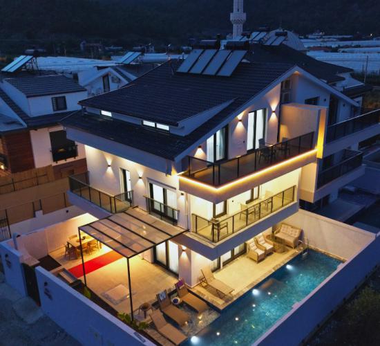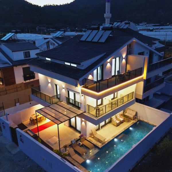 Villa Karakaya, Fethiye’nin Karagedik bölgesinde konumlanan, 4 yatak odalı, 5 banyolu ve 8 kişi konaklama kapasiteli, özel havuzlu kiralık villa seçenekleri arasında yer almaktadır. Geniş yaşam alanları ve modern tasarımıyla kalabalık aileler ve arkadaş grupları için konforlu ve keyifli bir tatil imkânı sunar. Villamızda ferah bir salon, tam donanımlı mutfak ve konforlu yatak odaları bulunmaktadır. Özel yüzme havuzu ve bahçe alanı, tatil boyunca misafirlerin rahat ve huzurlu vakit geçirmesine olanak sağlar. Fethiye kiralık villa arayışında olan misafirler için avantajlı bir konumda bulunan Villa Karakaya; Karagedik merkeze, marketlere ve plajlara kısa sürüş mesafesindedir. Hem doğayla iç içe hem de merkezi bir tatil isteyenler için ideal bir tercihtir.