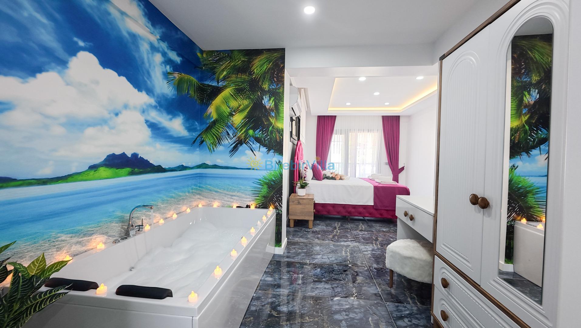 3.Yatak odası: Çift kişilik yatak, klima, elbise dolabı, ebeveyn banyosu, komodin ve balkon bulunmaktadır.