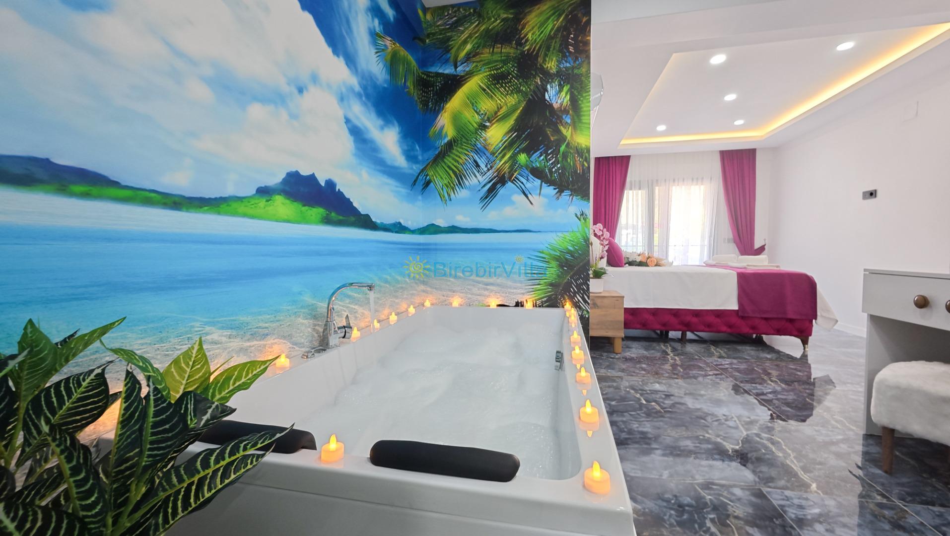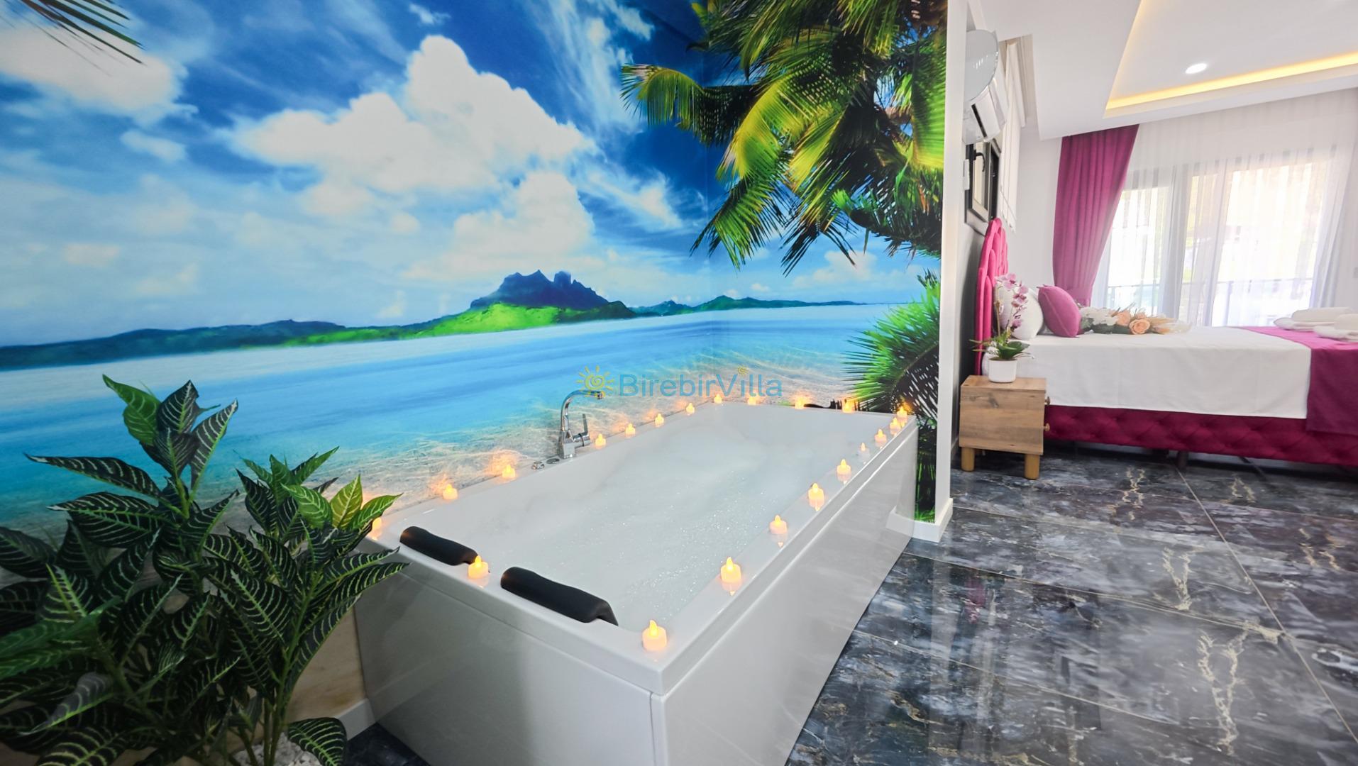 Not: Doğa ile iç içe yaşama sahibi olan tüm villalarımızda düzenli olarak ilaçlama yapılır. Buna rağmen çevrede haşere vb. olma ihtimali vardır. Havuzun korunaklı villalarımızda kesinlikle %100 görünmeme garantisi vermemekteyiz. Bu villalarımızda her zaman %10 sakınma payı mevcuttur. Sitemizde bulunan villa fotoğraflarının ekranı ekrana sığdırmak için 'Geniş Açılı Lens' ile çekilmektedir. Bu nedenle resimlerdeki objeler, gerçek boyutlardan daha büyük veya küçük görünebilmekte.