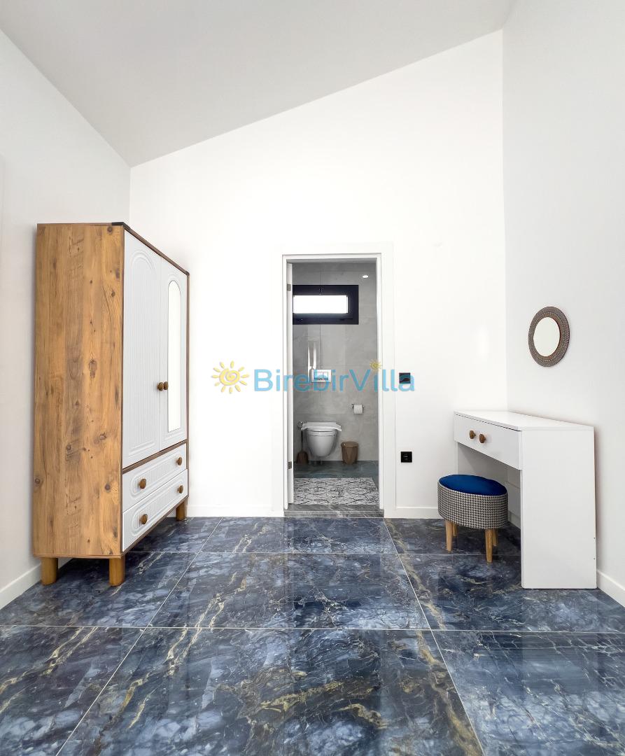 1.Yatak odası: Çift kişilik yatak, ebeveyn banyo, klima, elbise dolabı, komodin, makyaj masası ve balkon bulunmaktadır.