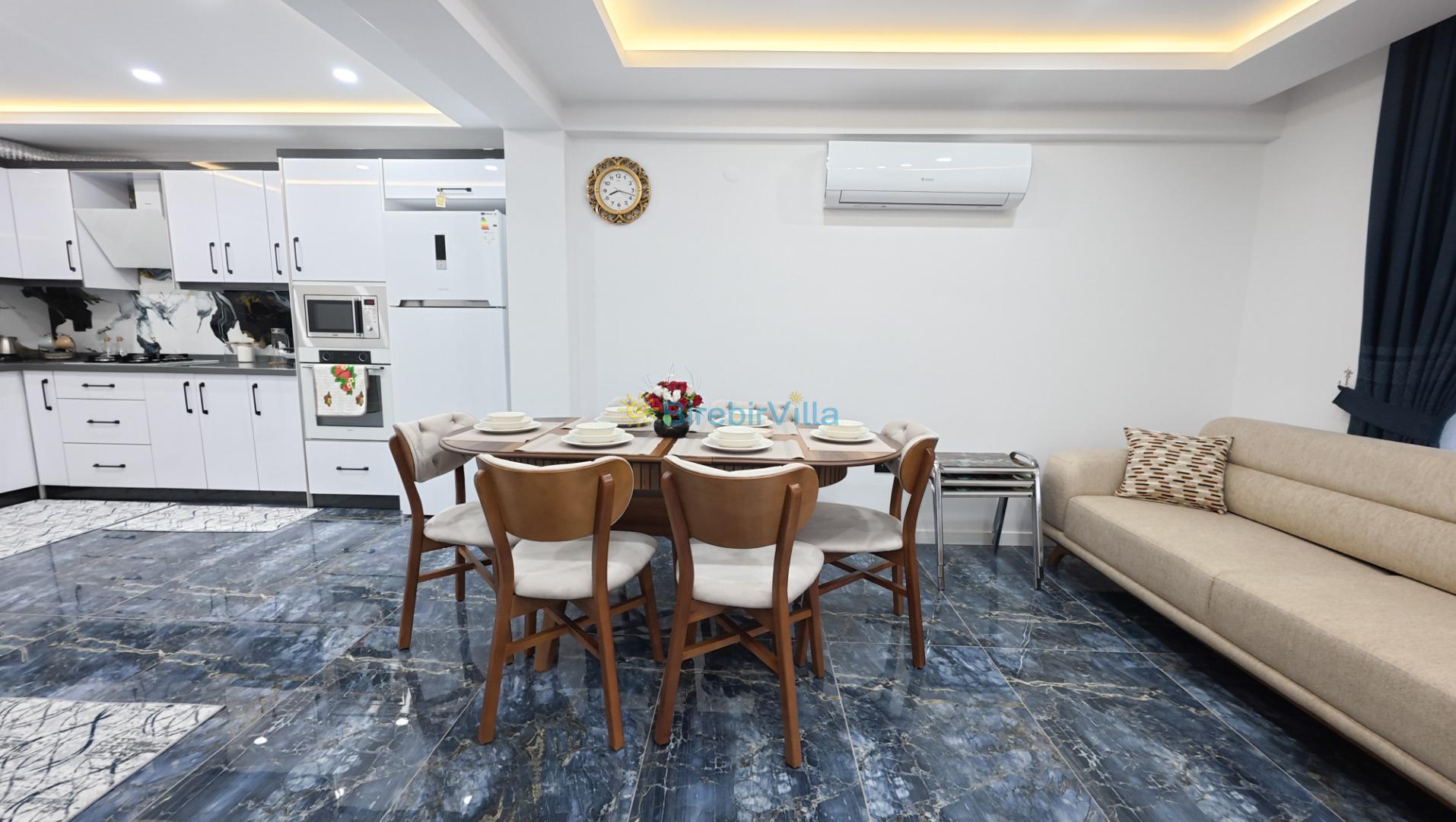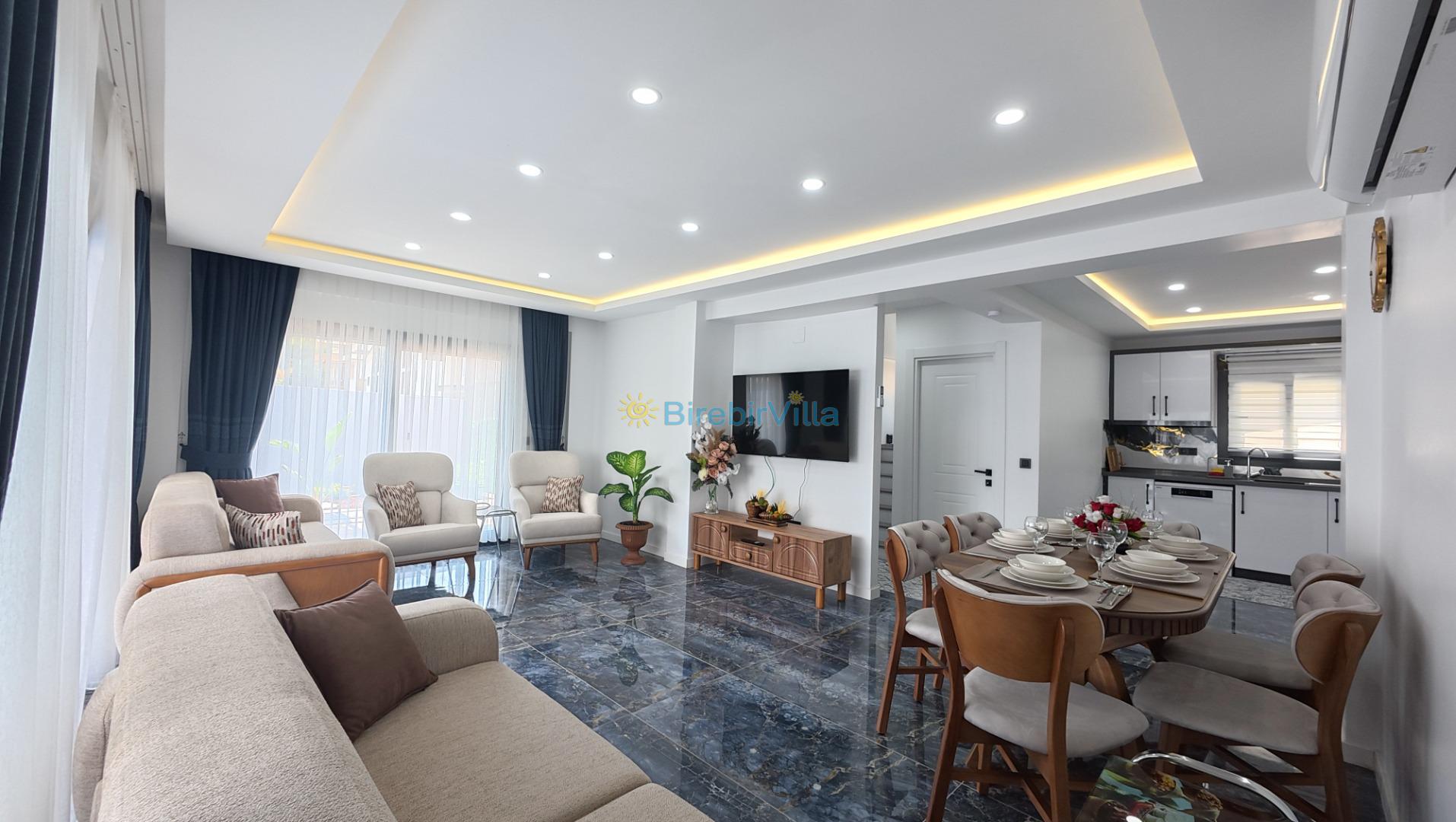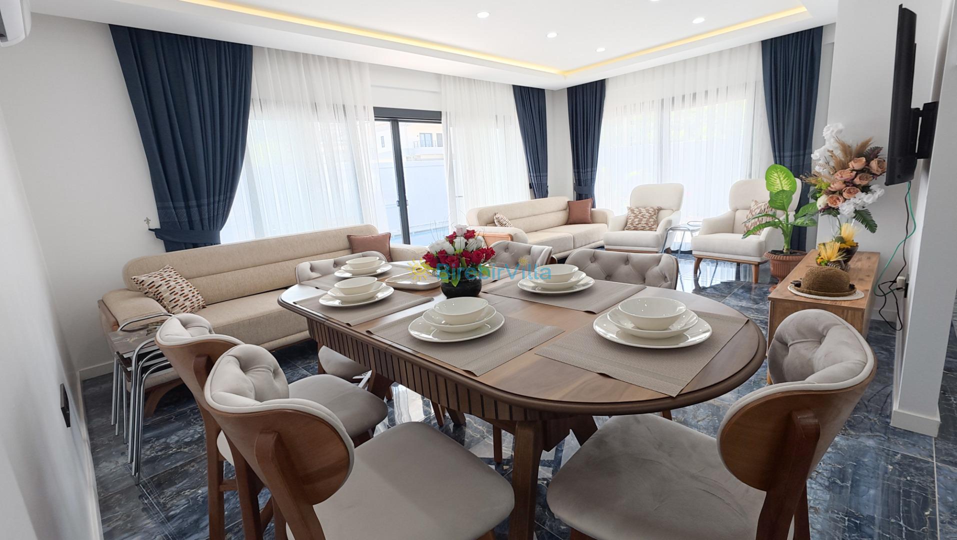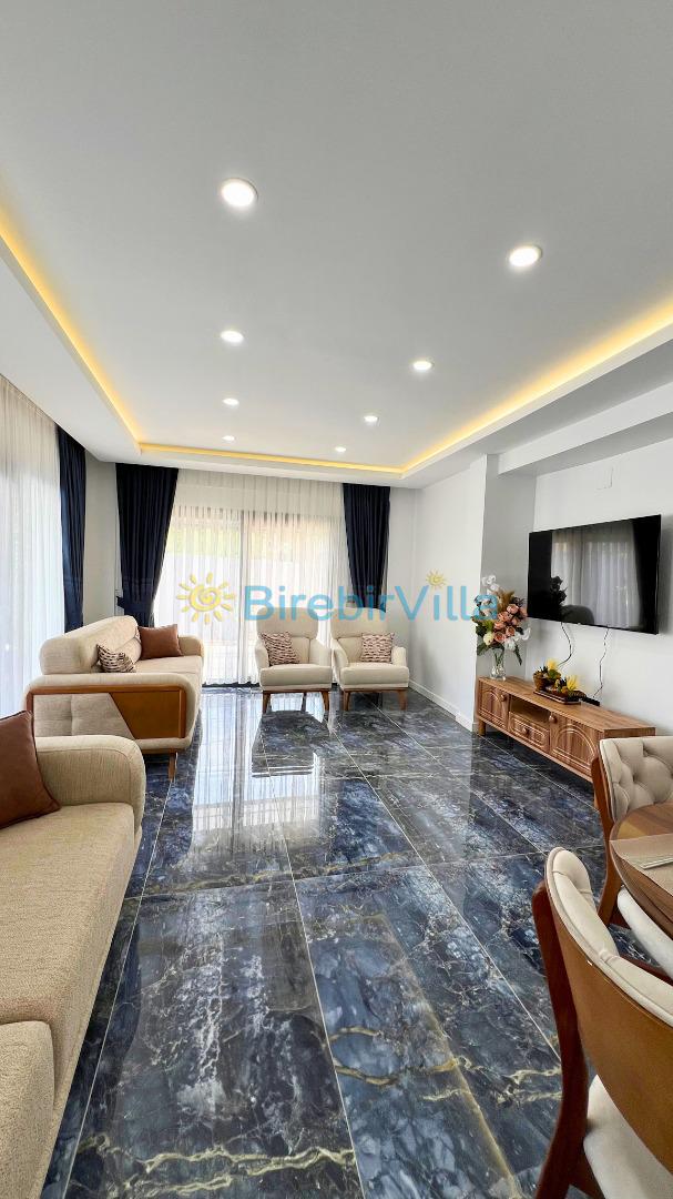 Salon: Açık mutfaklı salon, modern koltuklar, Lcd tv, uydu alıcısı, 6 kişilik yemek masası ve klima bulunmaktadır.