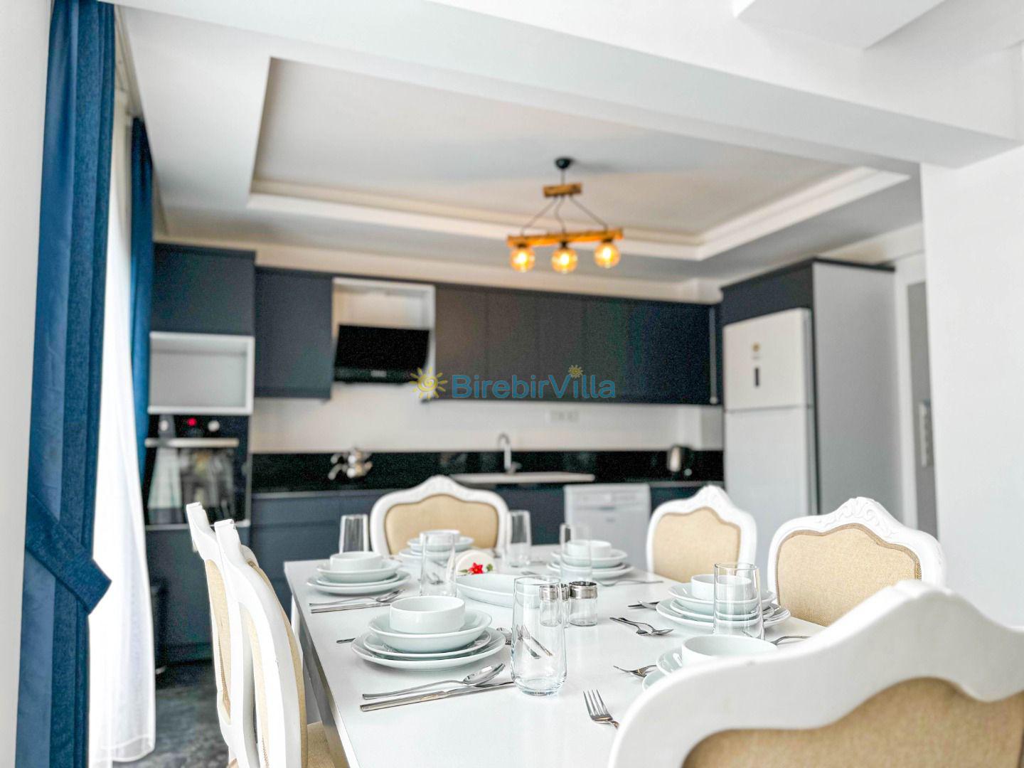 Mutfak: Buzdolabı, fırın, mikrodalga, çamaşır makinesi, bulaşık makinesi, 4’lü ocak, elektrikli su ısıtıcısı (kettle), elektrikli süpürge, 8 kişilik yemek takımı, tava, tencereler, çatal ve bıçak takımı ve diğer mutfak malzemesi mevcuttur.